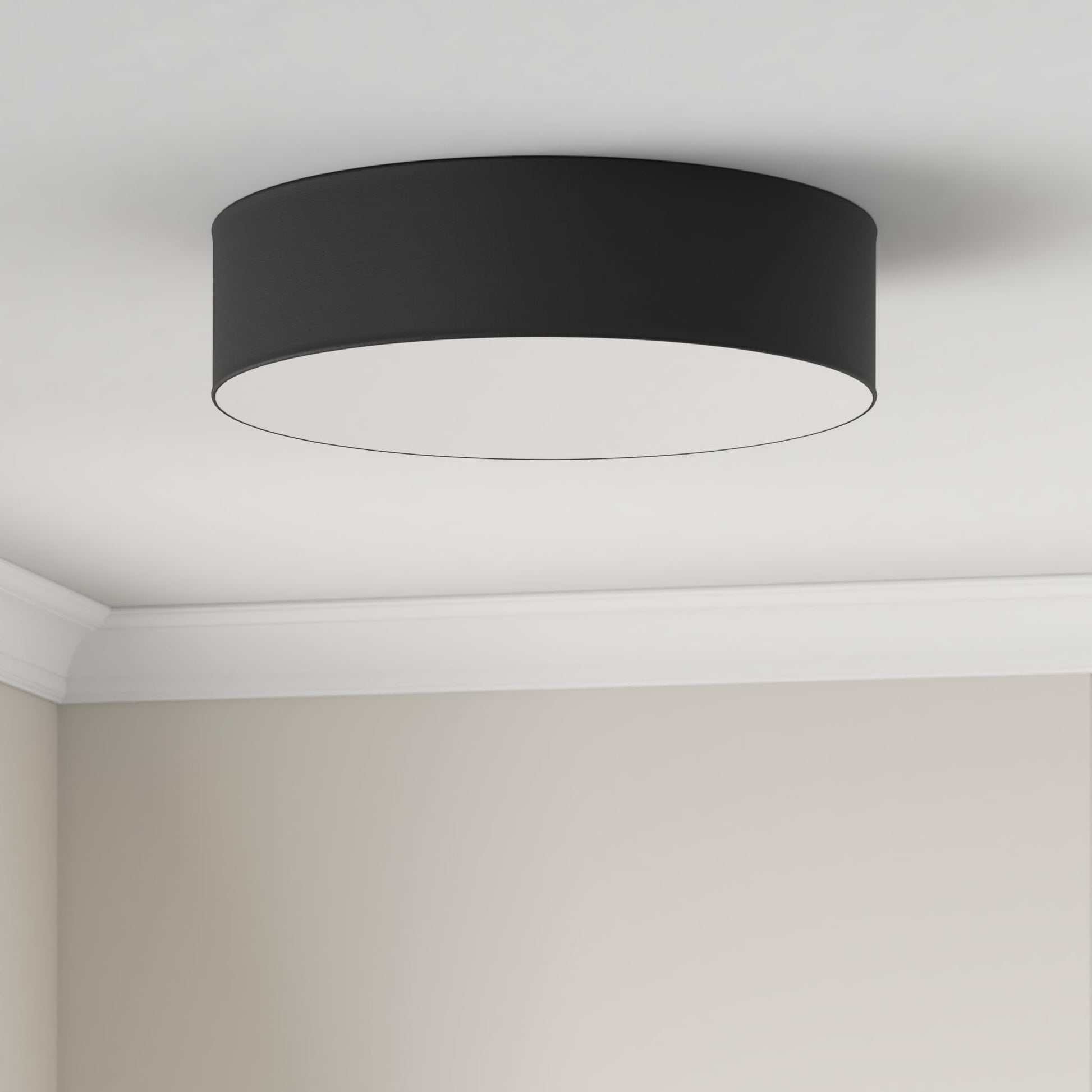 Dank ihres Stoffschirms, der für ein sanftes und blendfreies Licht sorgt, ist die Lampe ideal für Wohn- und Schlafzimmer, um eine gemütliche und einladende Atmosphäre zu schaffen. Ihr flaches Design passt sich zudem harmonisch in Räume mit niedriger oder hoher Deckenhöhe ein. Aufgrund der Schutzart IP20 ist sie für trockene Innenräume vorgesehen.