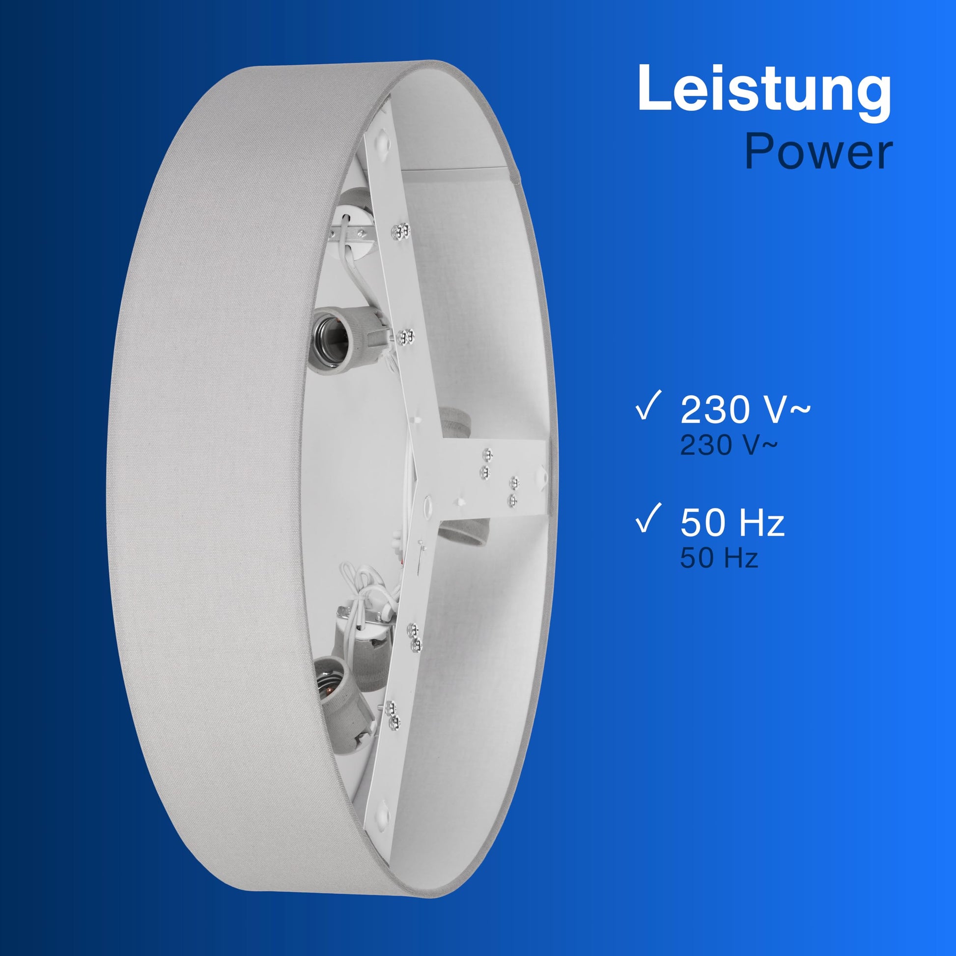- Zeitloses Design: Runder Stoff-Lampenschirm (Durchmesser 50 cm) in edlem Grau für einen klassischen Vintage-Look.