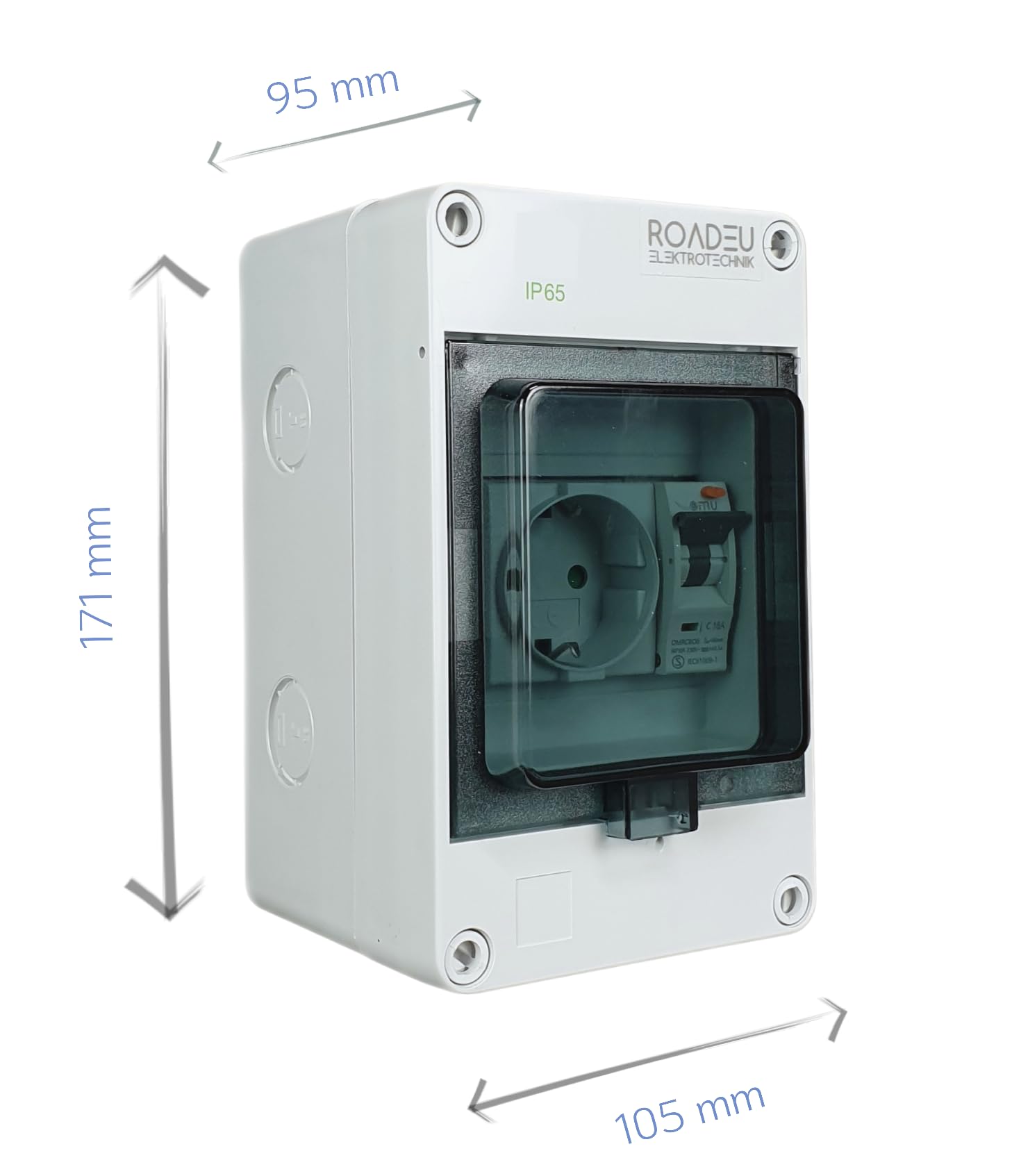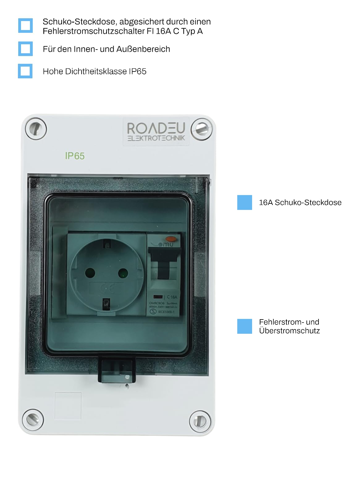 RoadEu Schuko Wandverteiler FI Schutzschalter IP65 – 16A 230V