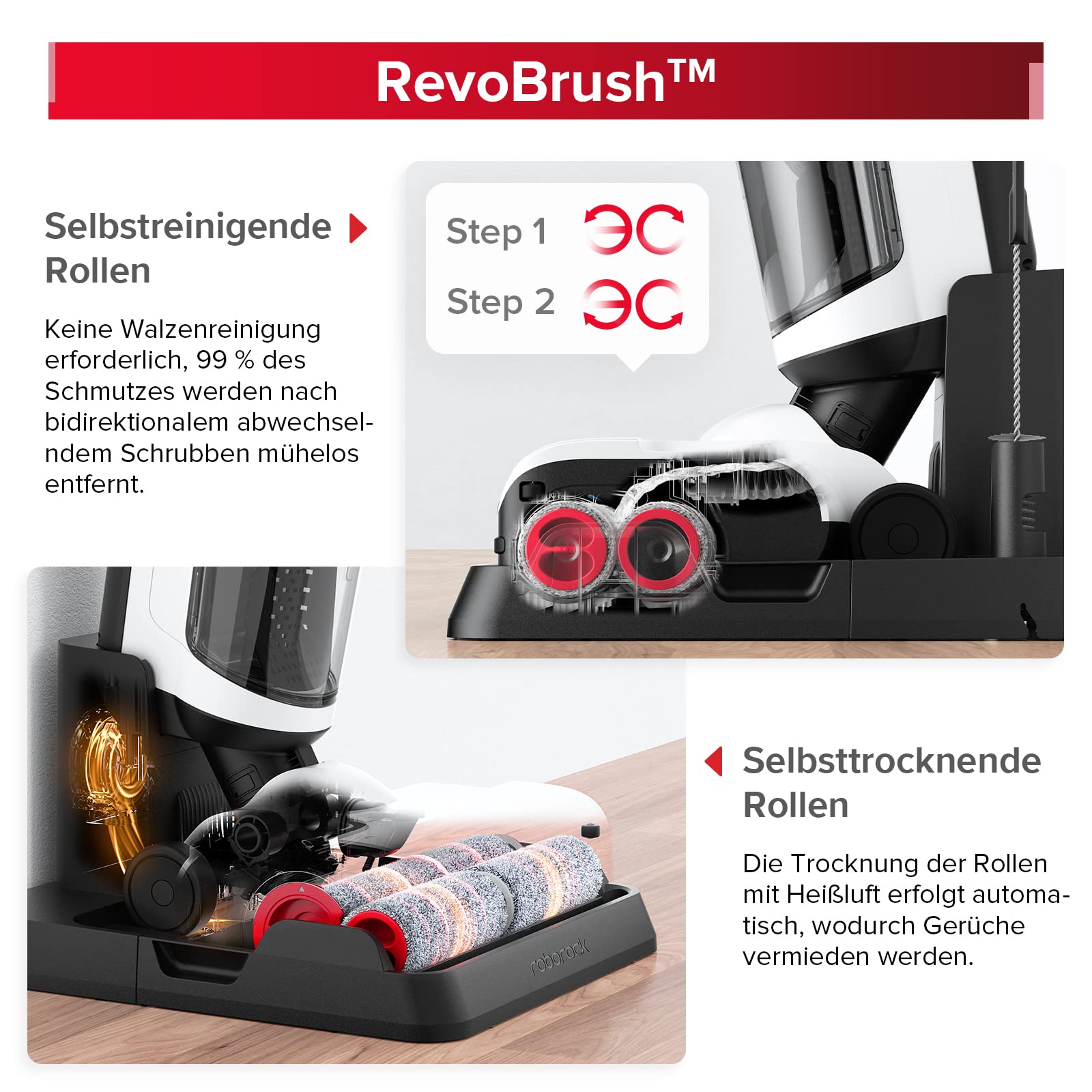 Nach der Reinigung starten Sie per Knopfdruck das Selbstreinigungsprogramm, welches die Bürsten und internen Kanäle spült. Direkt danach trocknet eine integrierte Heissluft-Funktion die Bürstenwalzen vollständig, um die Bildung von Bakterien und unangenehmen Gerüchen effektiv zu verhindern.