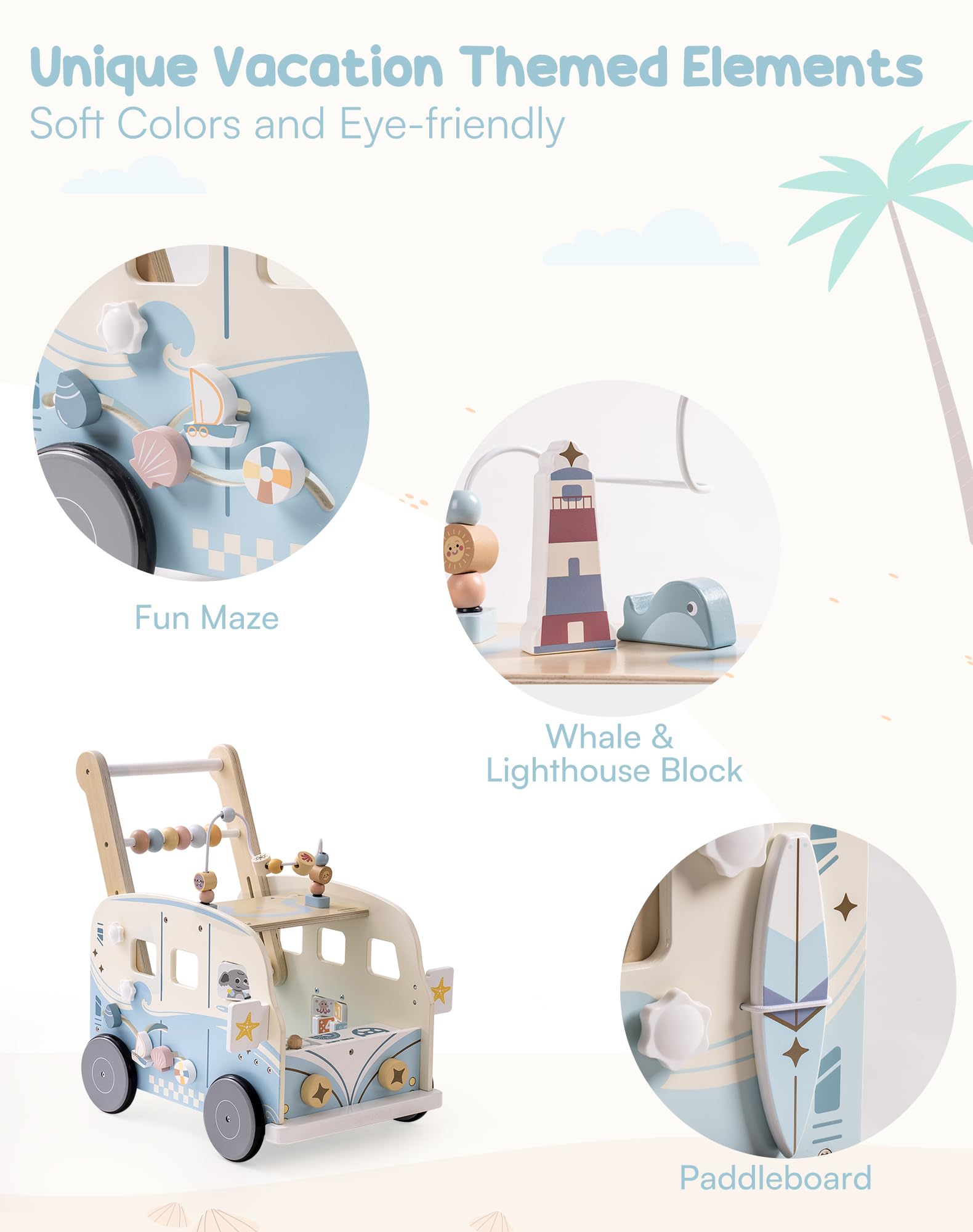 - Kreatives Design: Gestaltet wie ein charmanter Reisebus, regt dieser Lauflernwagen mit Details wie Rückspiegel, Schalthebel und angedeuteten Lichtern die Fantasie an. Liebevolle Meereselemente runden das verspielte Aussehen ab.