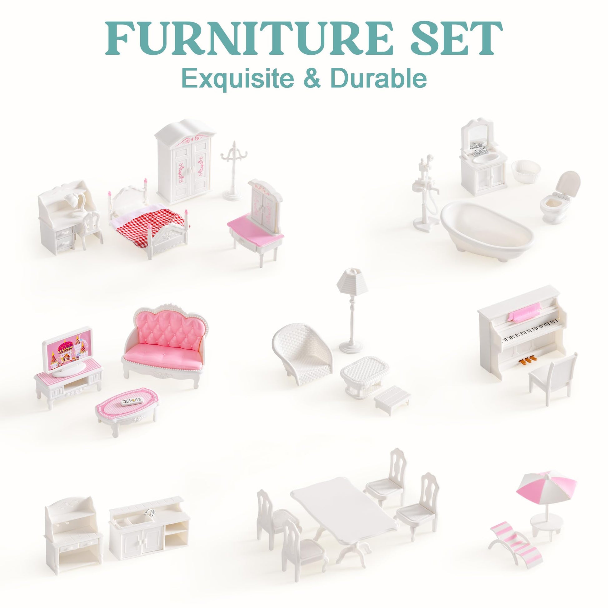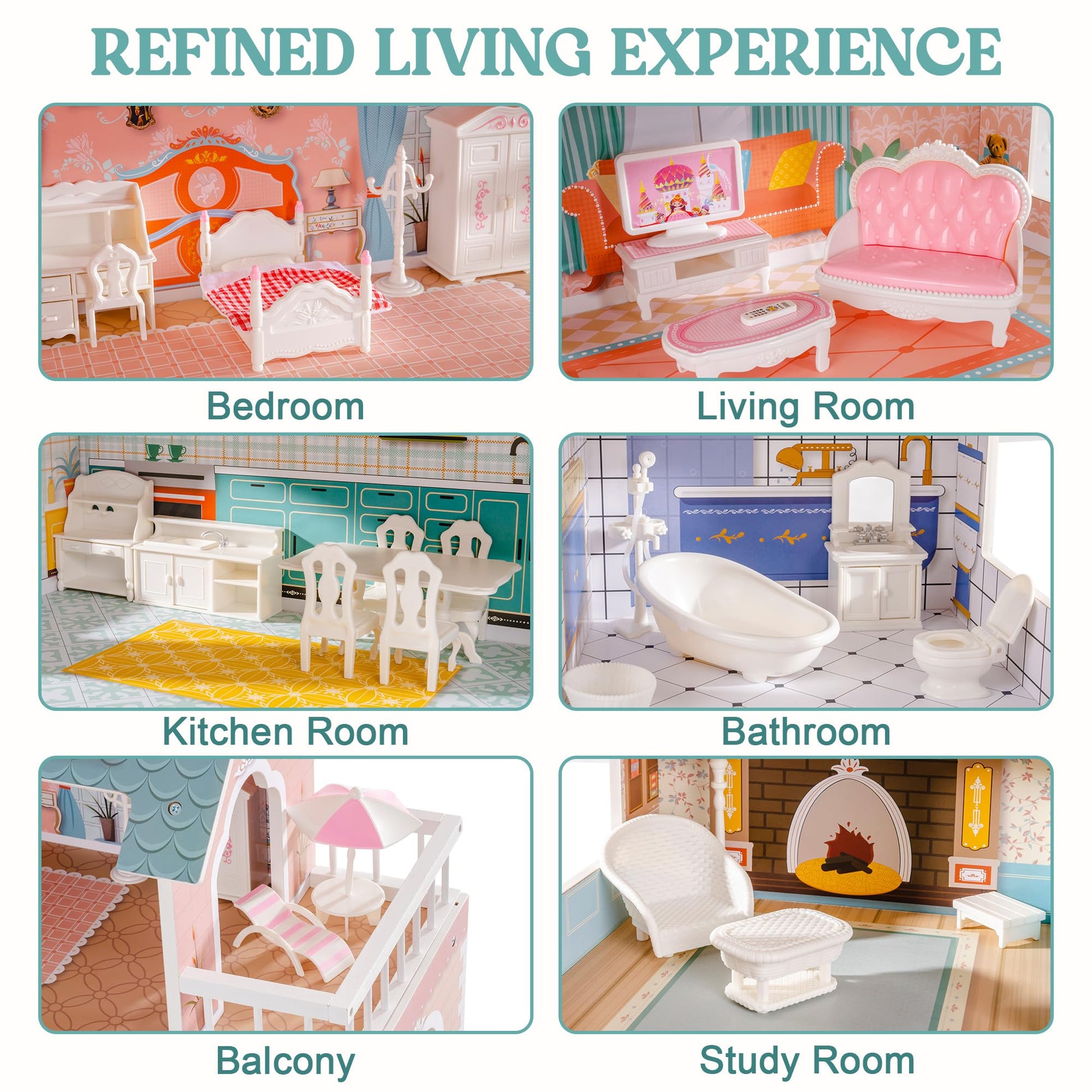 ROBUD Holz-Puppenhaus mit Möbeln & Zubehör – Kinder Spielhaus