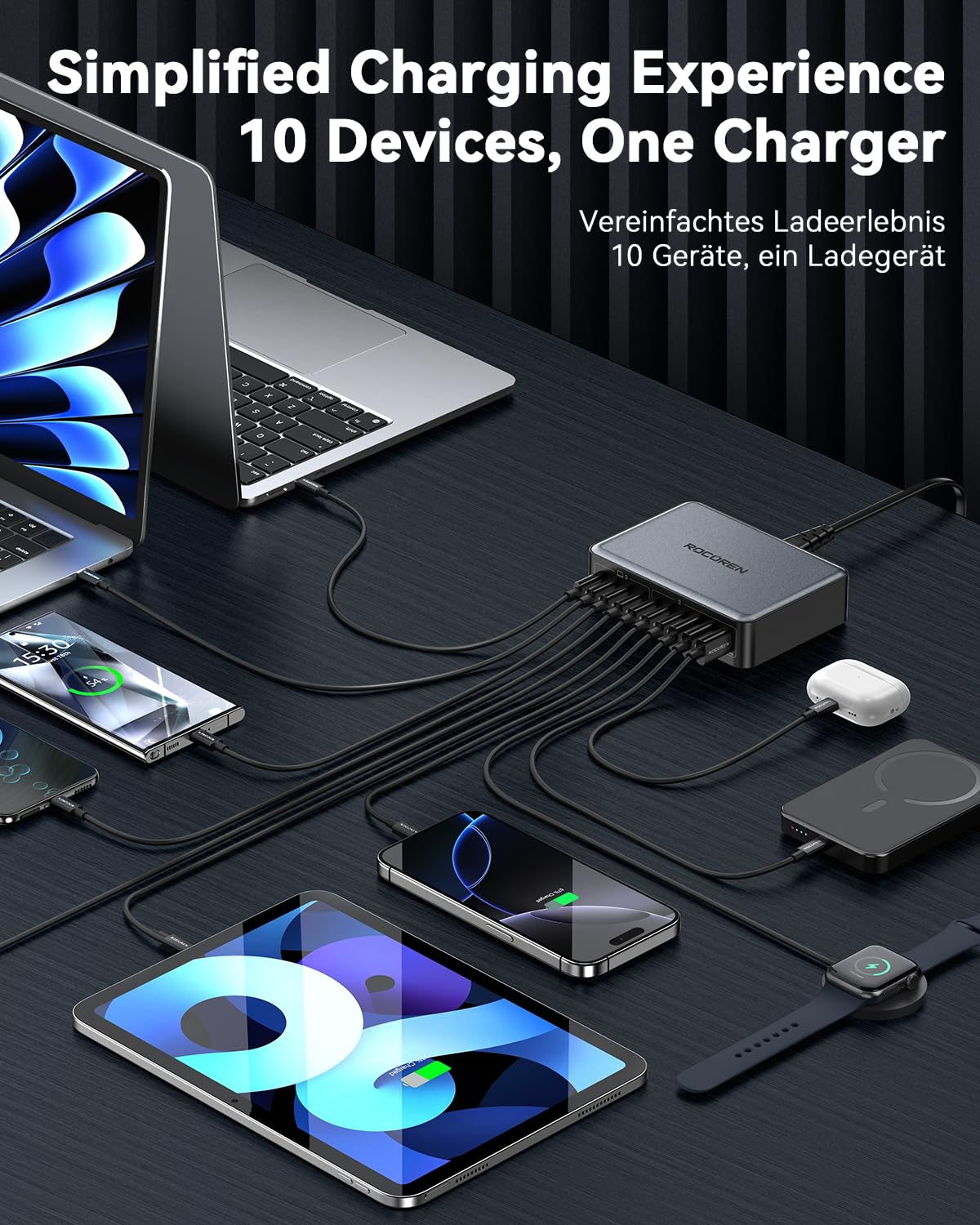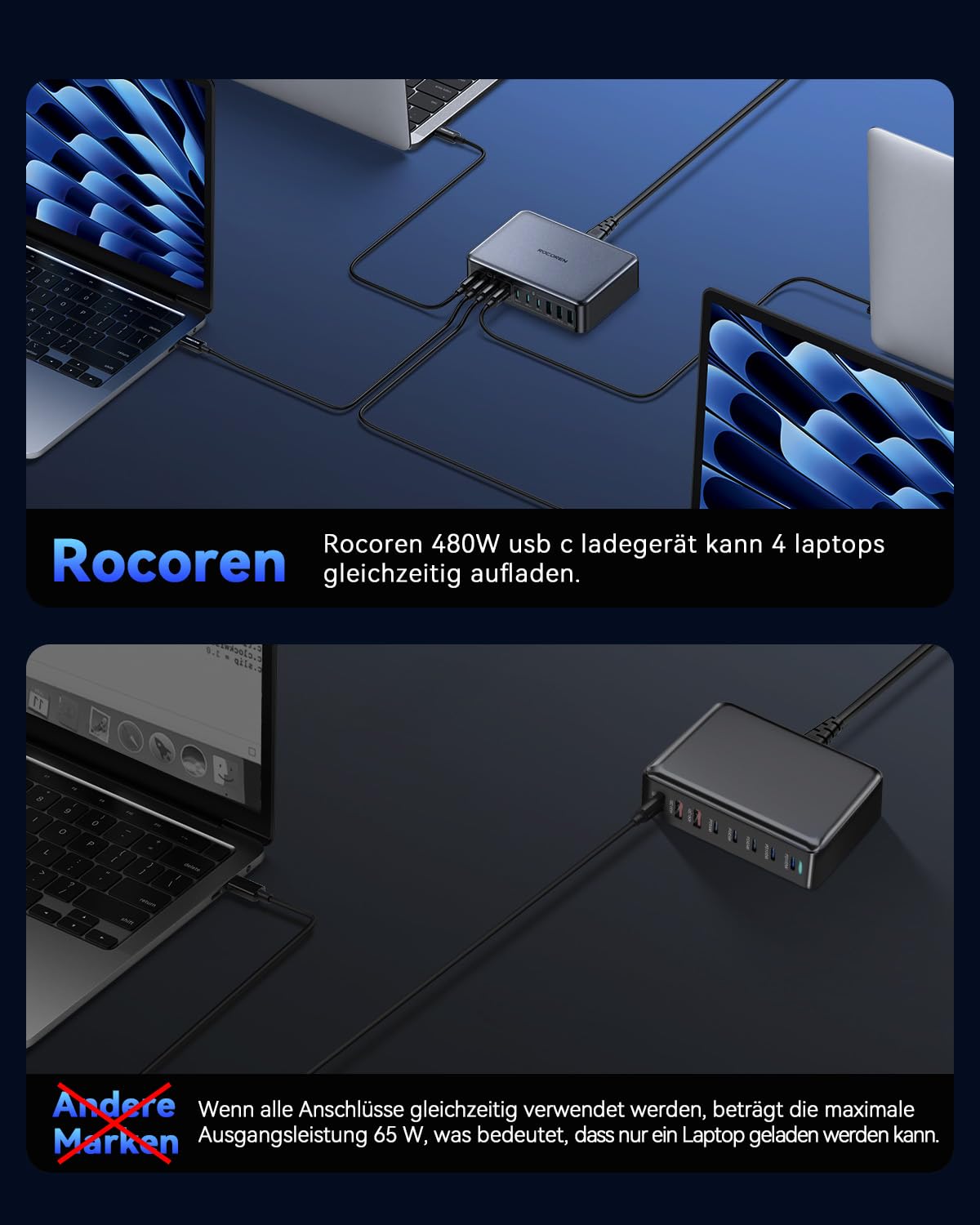 Rocoren 480W GaN USB C Ladestation – 10-Port PD 100W