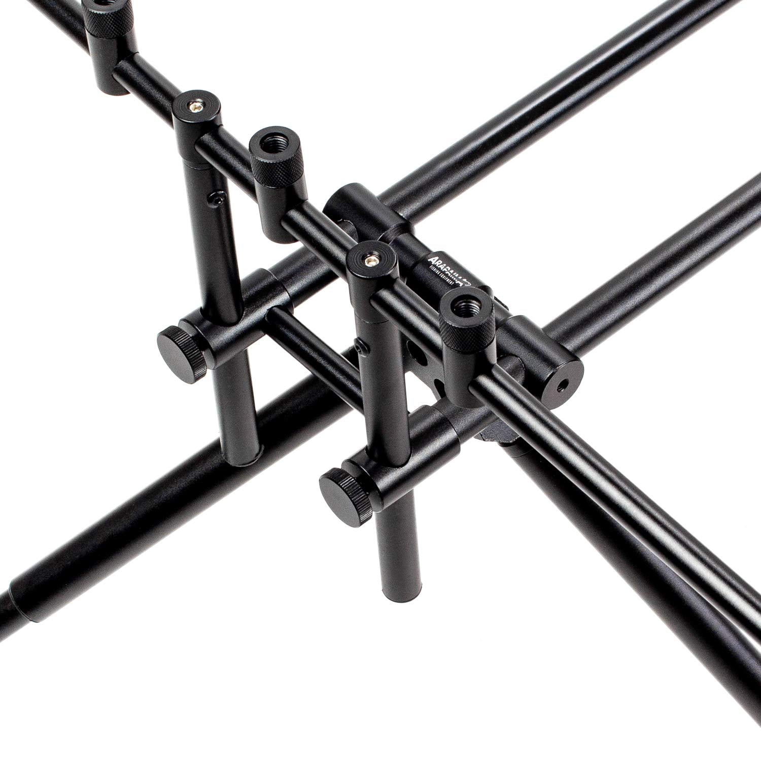 - Variable Länge: Mittels der teleskopierbaren Mittelstreben mit Schraubverschlüssen lässt sich die Länge des Gestells stufenlos von 90 cm bis 140 cm anpassen.