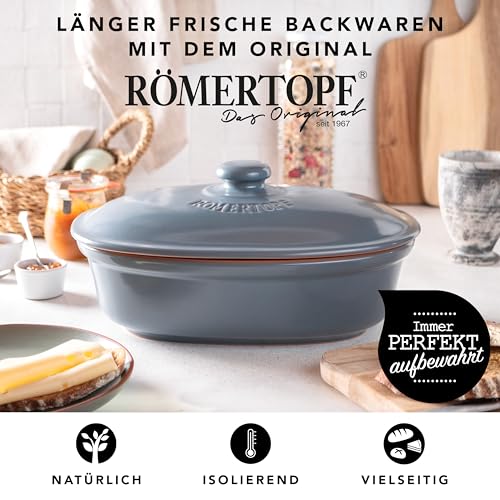 Römertopf Brottopf aus Keramik - 30x21cm blau-grau