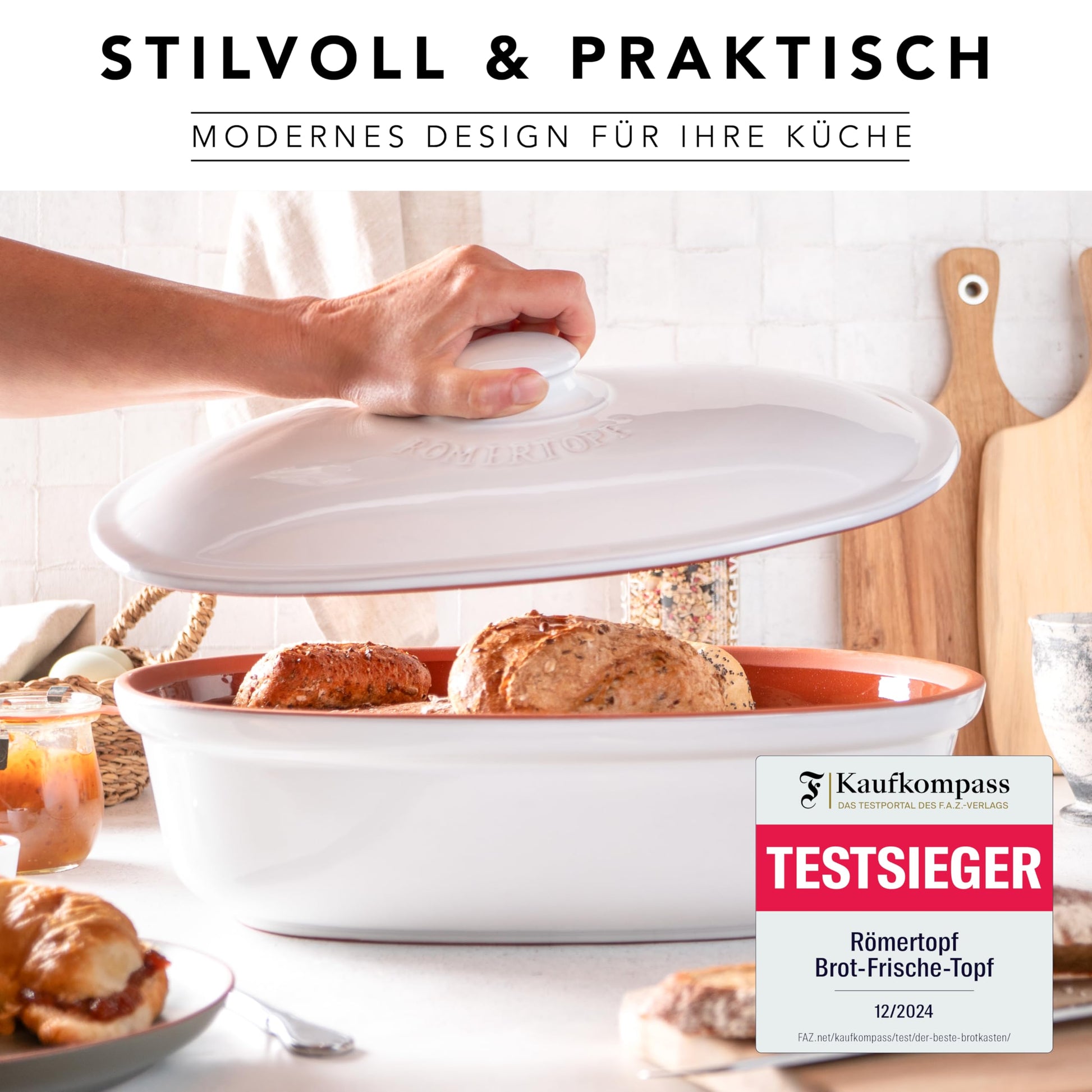 Römertopf Brottopf 6.5L weiss ovaler Brotbehälter Keramik