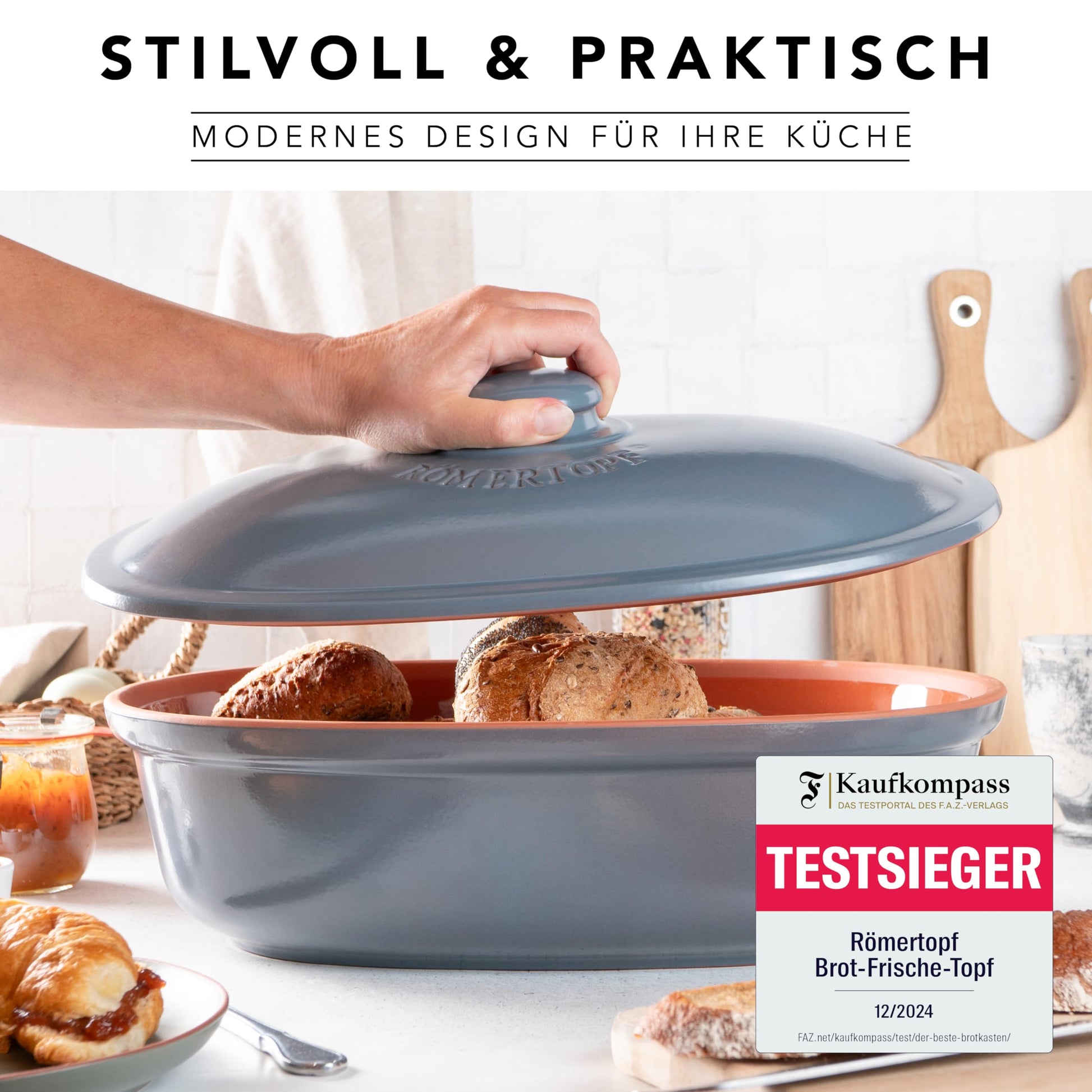 Römertopf Brottopf MAXI Brotbehälter – oval blau-grau