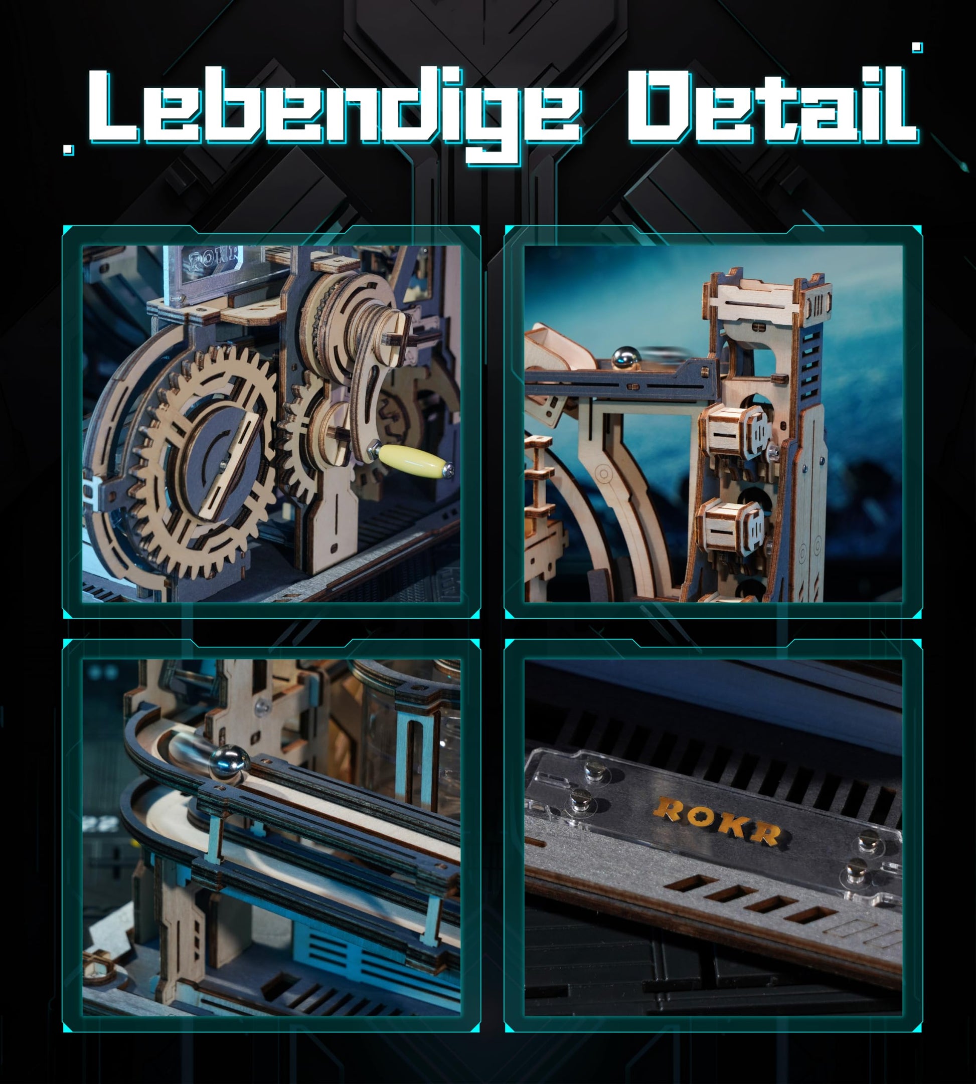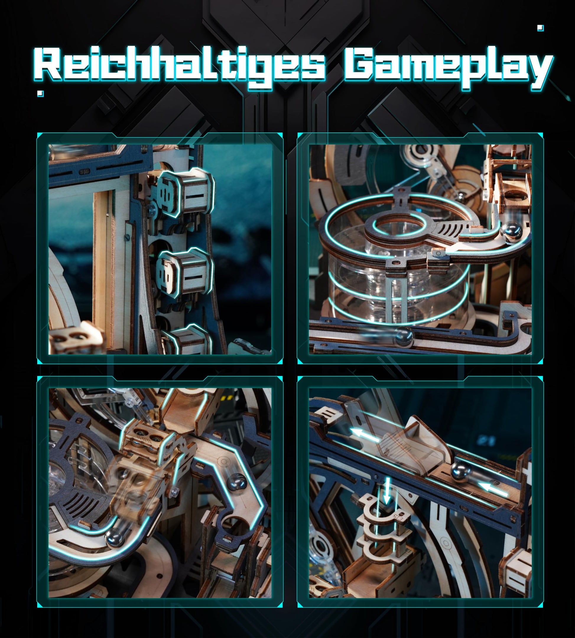 Erleben Sie mit diesem elektrischen 3D-Holzpuzzle eine faszinierende Kugelbahn, die Technik und Design auf eindrucksvolle Weise verbindet. Das Modell «Night City 2.0» wird nach dem Zusammenbau zu einem dynamischen Kunstwerk in Ihrem Zuhause.