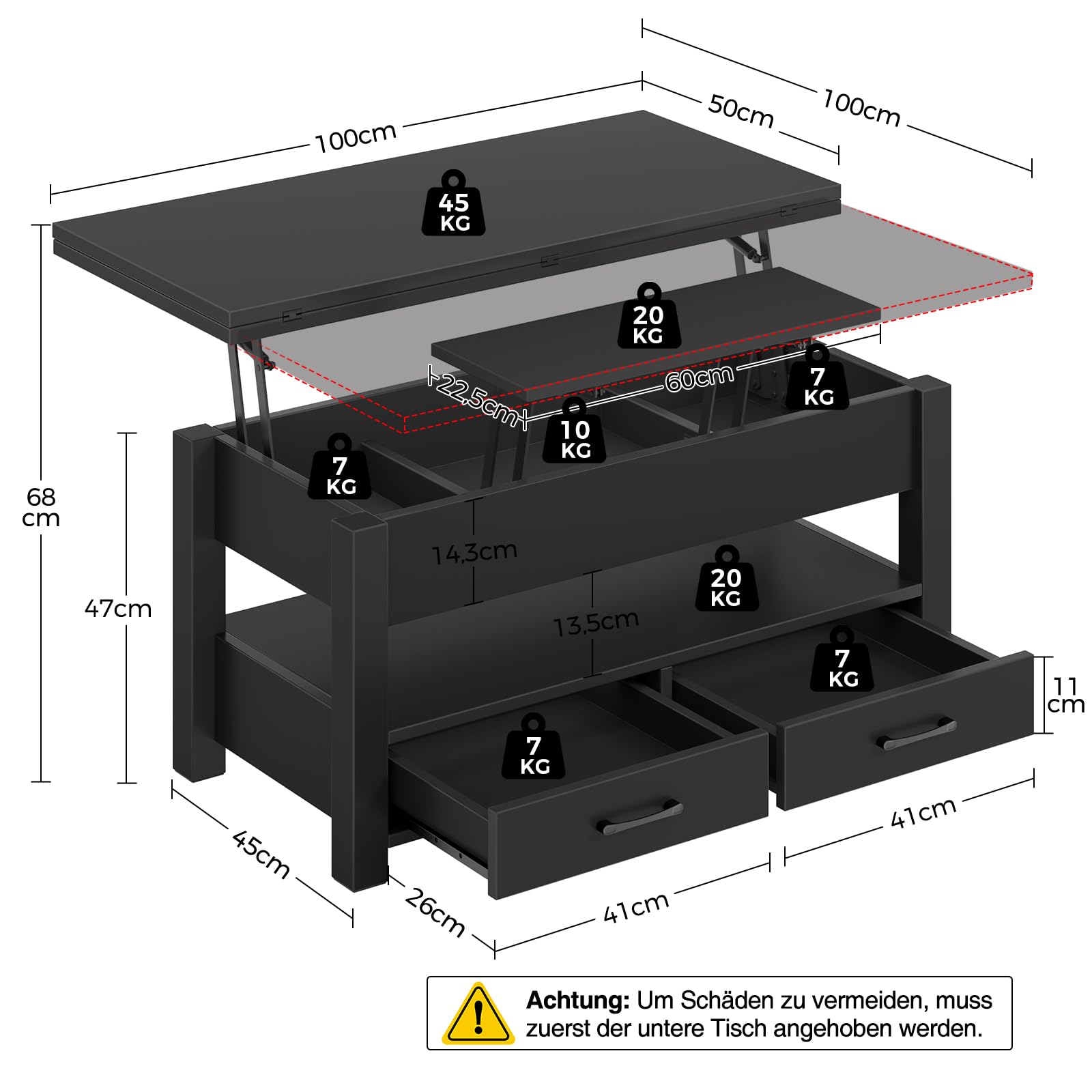 Dieser höhenverstellbare Salontisch ist die intelligente und platzsparende Lösung für moderne Wohnräume. Er kombiniert stilvolles Design mit aussergewöhnlicher Funktionalität und passt sich flexibel an Ihre Bedürfnisse an.