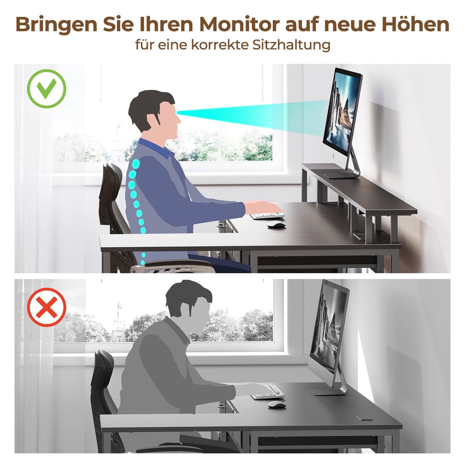 - Ergonomischer Monitorständer: Ein erhöhter Ständer positioniert Ihren Monitor auf optimaler Augenhöhe, was eine gesunde Sitzhaltung fördert und hilft, Nackenverspannungen zu reduzieren.