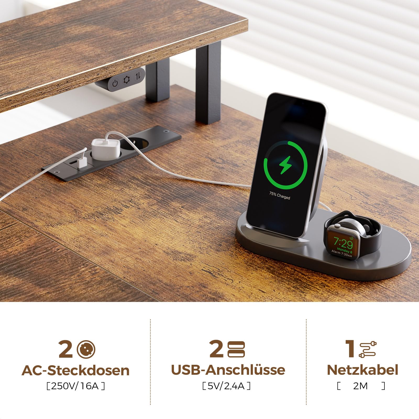 - Integrierte Stromversorgung: Eine eingebaute Leiste mit 2 Steckdosen und 2 USB-Anschlüssen versorgt Ihre technischen Geräte direkt am Arbeitsplatz.