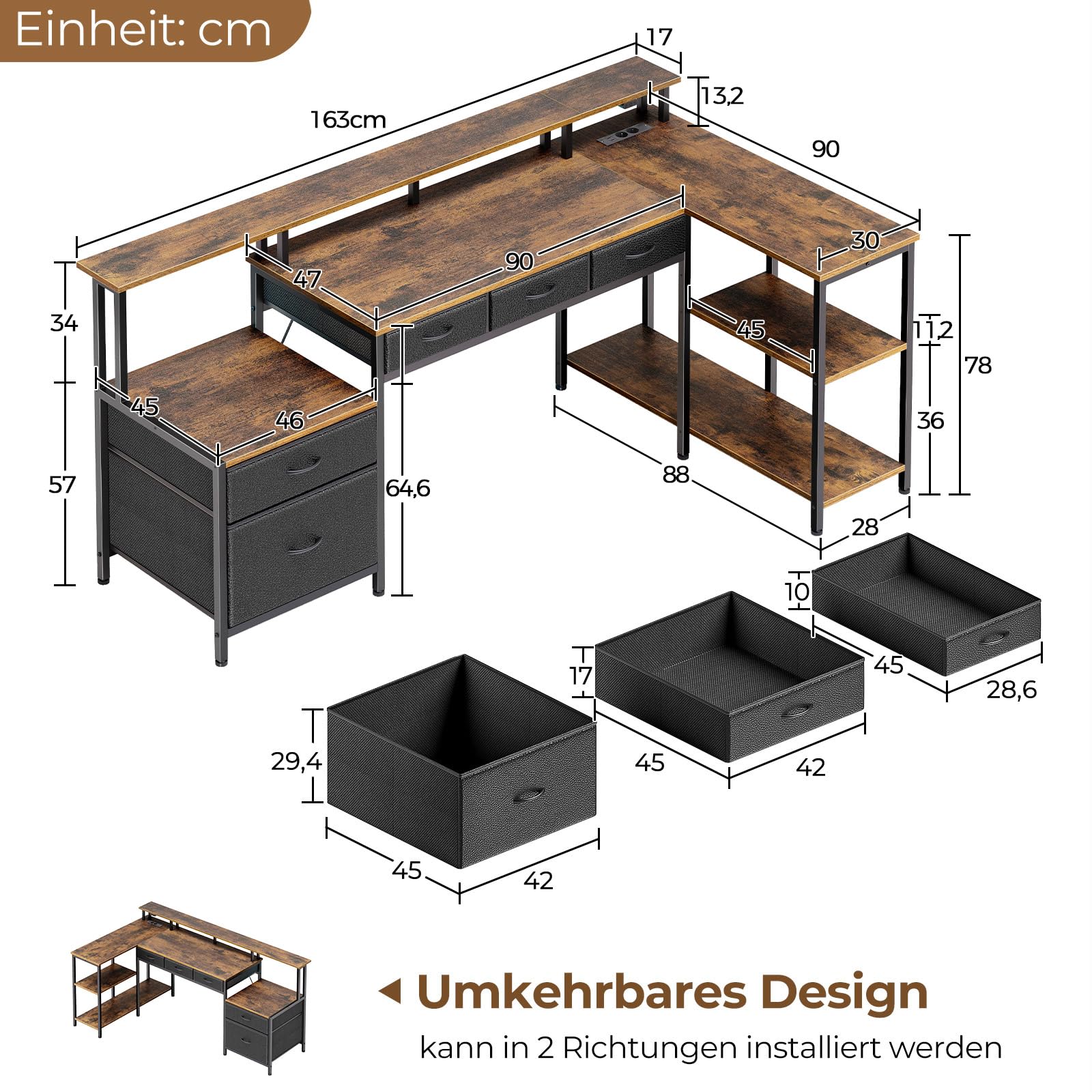 Wie viel Stauraum bietet der L-Form Schreibtisch?