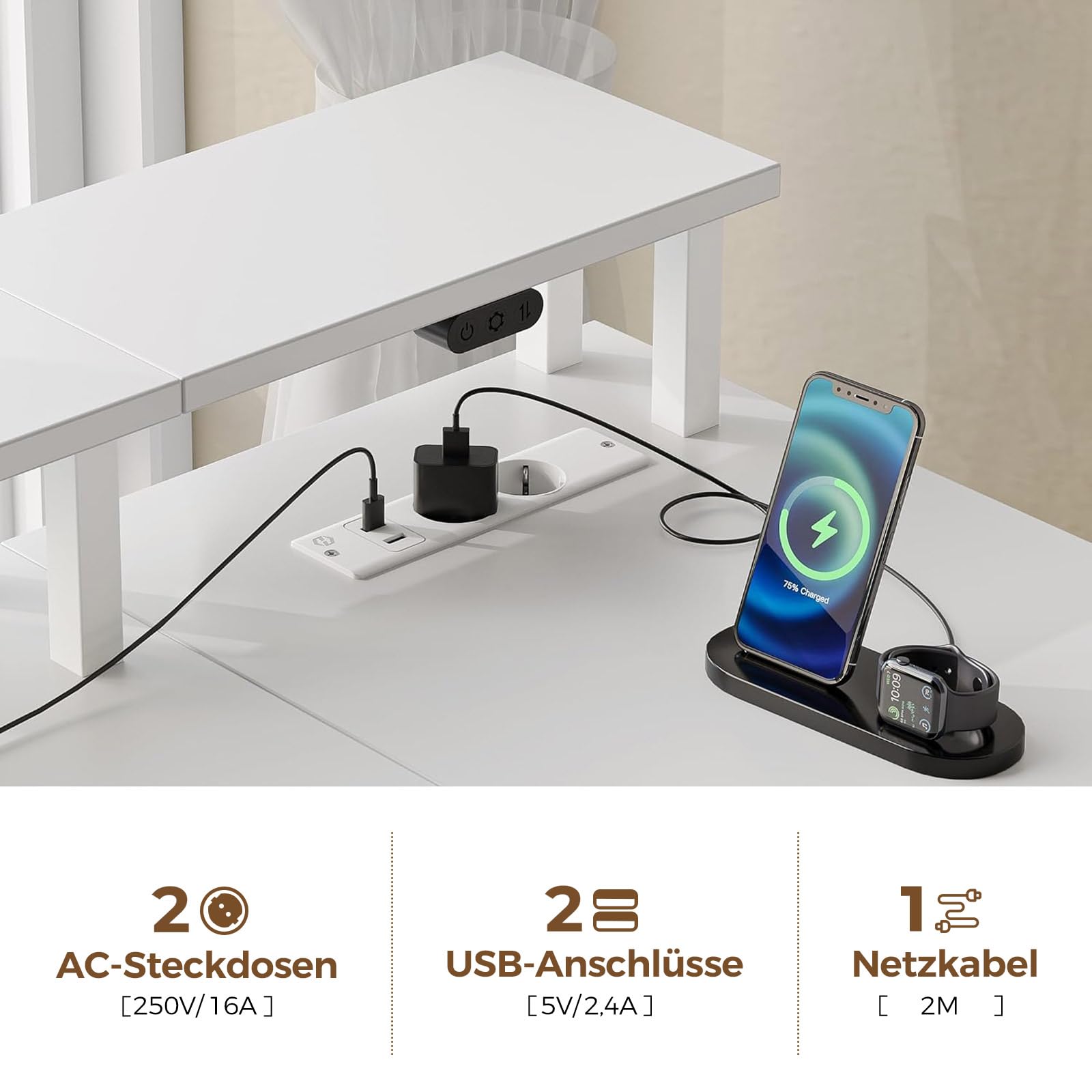 Komfort und Konnektivität: Laden Sie Ihr Smartphone, Tablet und andere Geräte direkt am Tisch, ohne sich nach einer freien Steckdose bücken zu müssen. Gleichzeitig sorgt der Monitorständer für spürbar mehr Komfort bei langen Sessions vor dem Bildschirm.