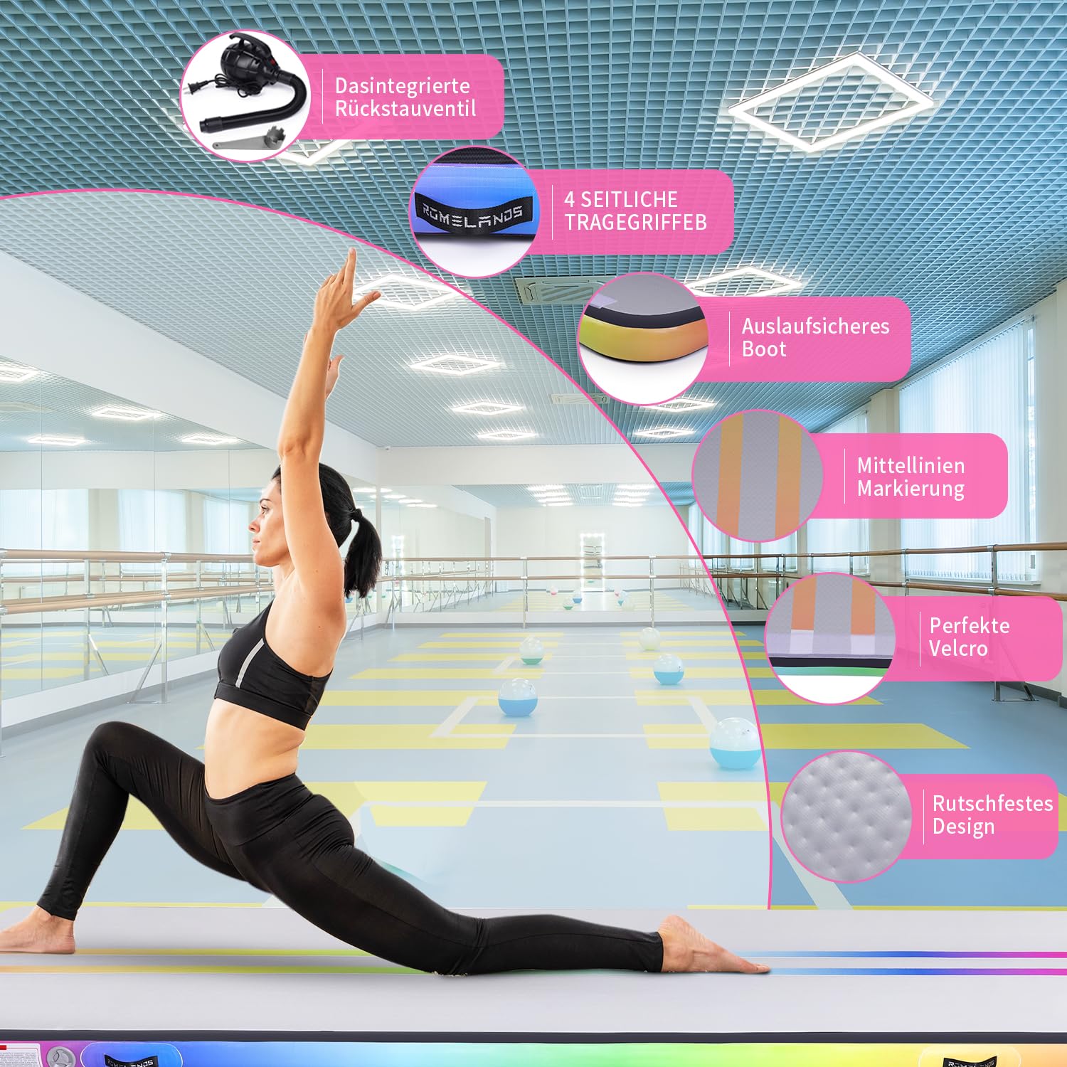 Diese aufblasbare Turnmatte von ROMELANDS ist der ideale und vielseitige Partner für Ihr Training, egal ob Gymnastik, Yoga oder spielerische Übungen zu Hause.