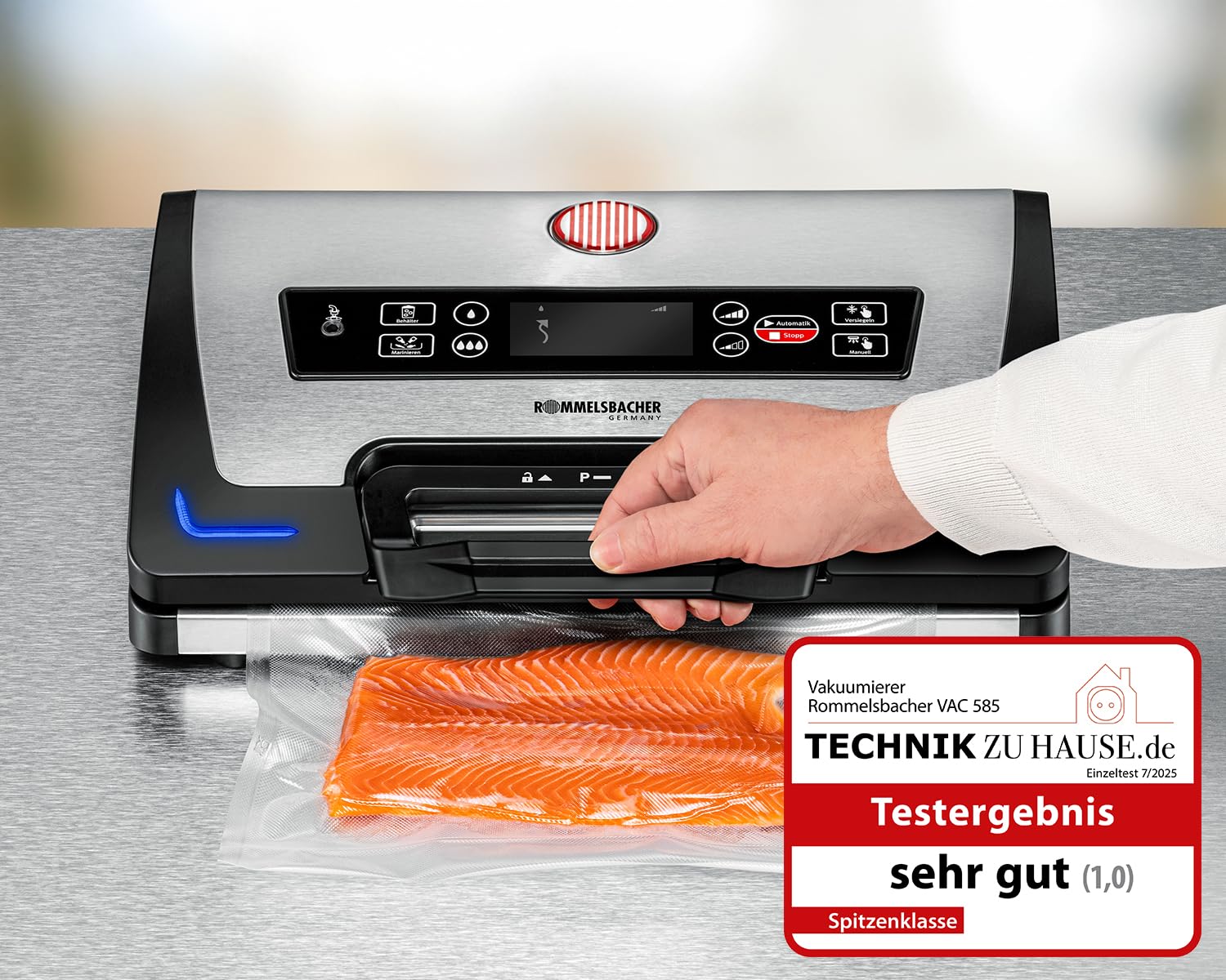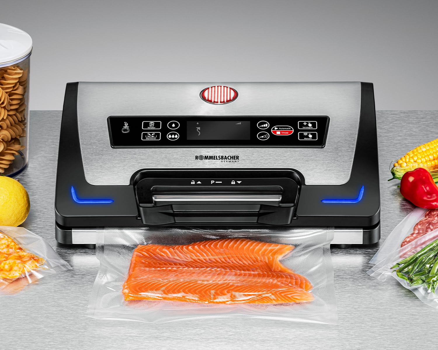 Der ROMMELSBACHER VAC 585 ist ein leistungsstarker Vakuumierer, der professionelle Ansprüche erfüllt und sich ideal für den anspruchsvollen Haushalt, für Jäger, Fischer oder die Kleingastronomie eignet. Seine robuste Bauweise und die durchdachten Funktionen machen das Konservieren von Lebensmitteln einfach und effizient.
