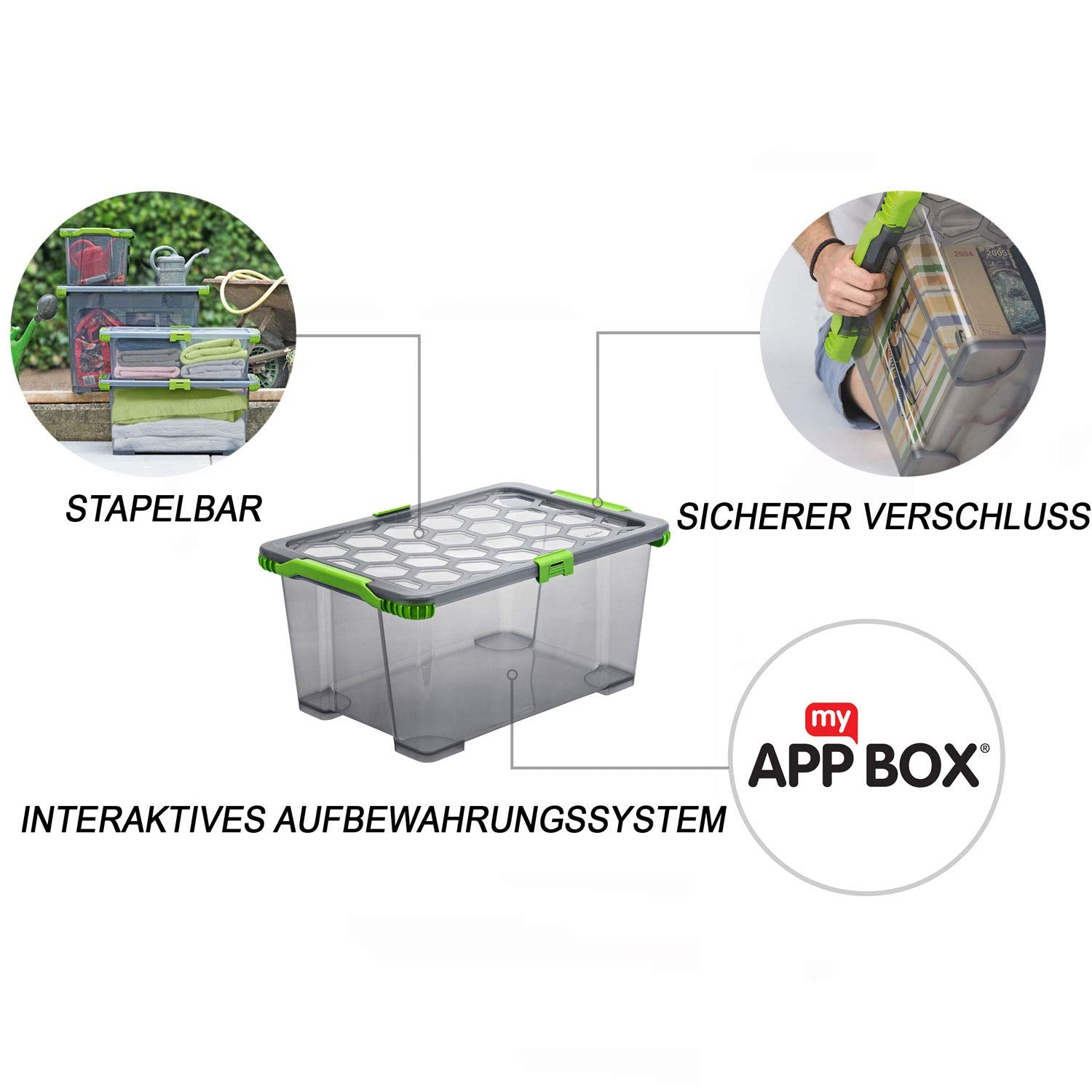 Die durchsichtige Gestaltung des Behälters ermöglicht jederzeit einen schnellen Überblick über den Inhalt, ohne die Box öffnen zu müssen. Ergonomische, röhrenförmige Griffe garantieren einen hohen Tragekomfort, selbst bei voller Beladung, während die zuverlässigen Klickverschlüsse alles sicher an seinem Platz halten.