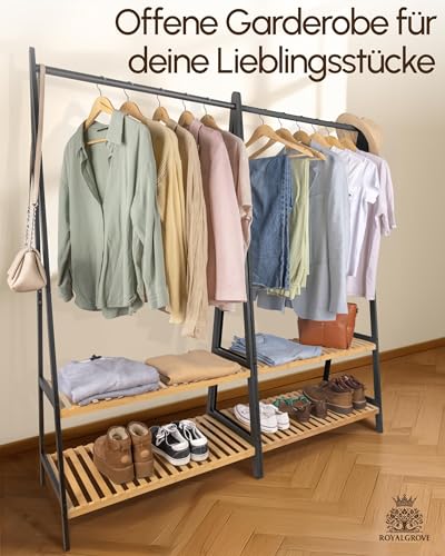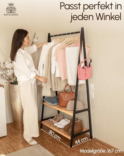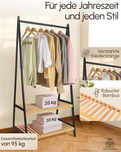 RoyalGrove Kleiderständer mit 2 Ablagen - Bambus schwarz