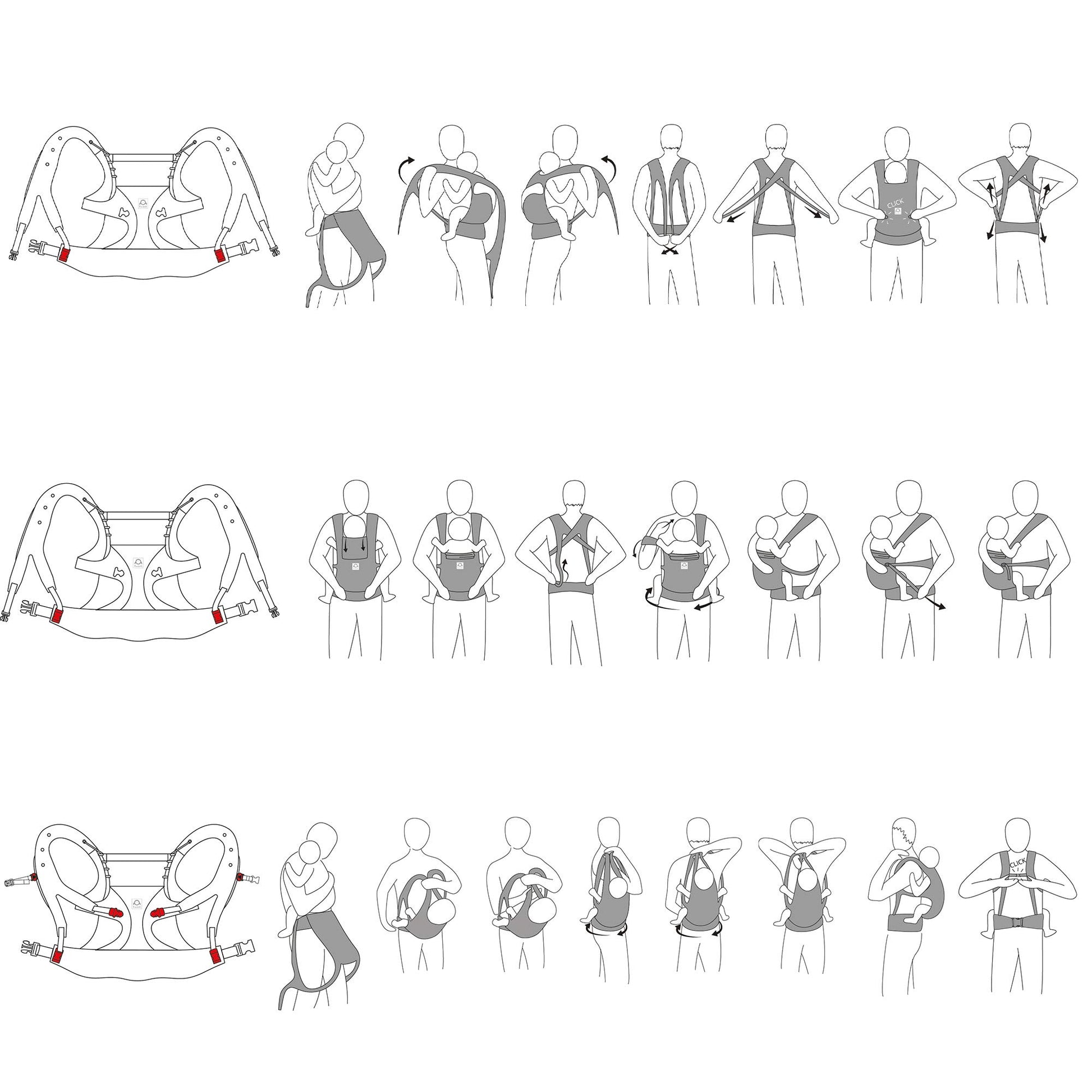 - Flexible Tragepositionen: Ermöglicht das Tragen vor dem Bauch (mit Gesicht zum Tragenden), seitlich auf der Hüfte und auf dem Rücken.
