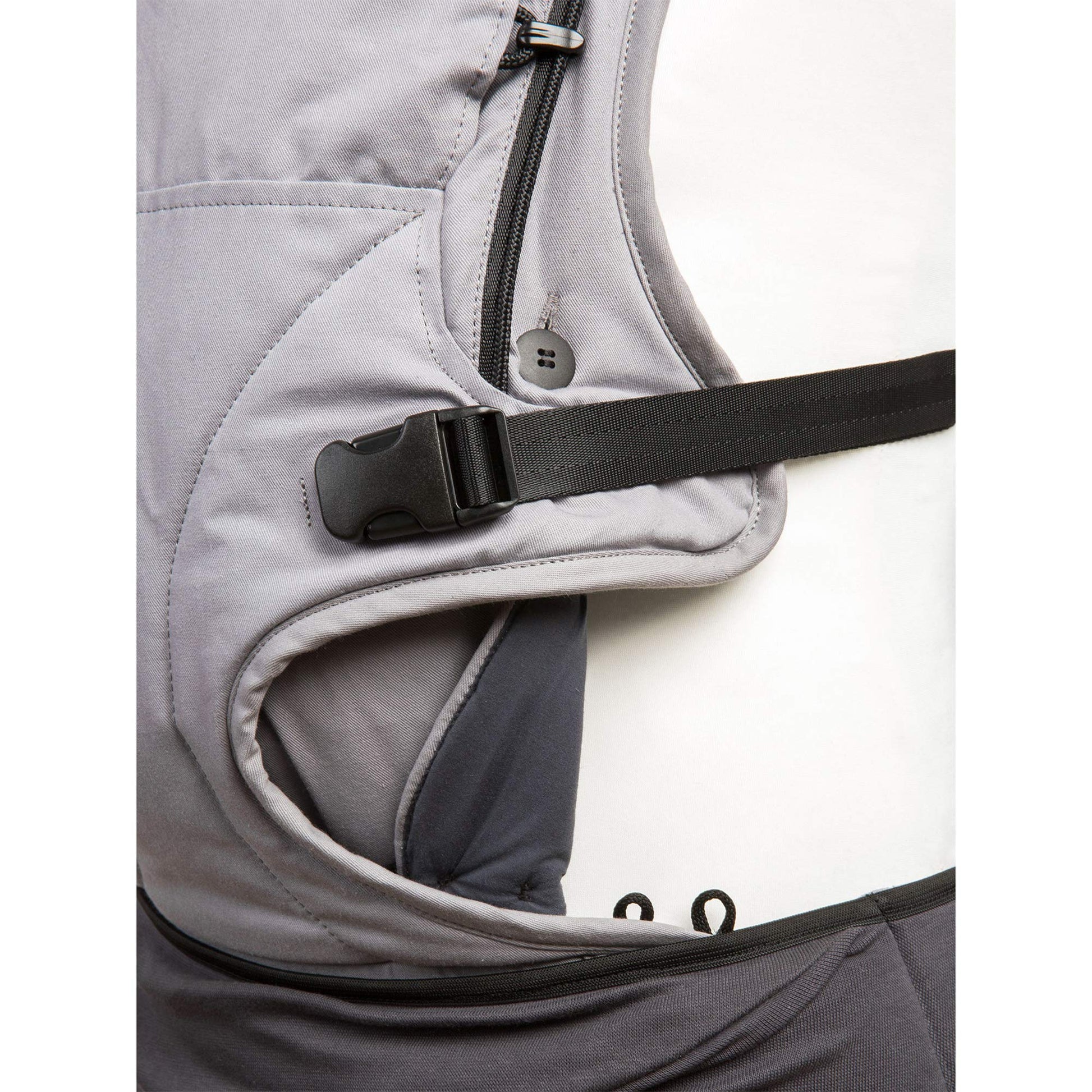 Der Tragekomfort wird durch die intelligenten Schultergurte maximiert. Sie sind flach, aber gut gepolstert und können wahlweise gerade (wie bei einem Rucksack) oder gekreuzt getragen werden. Dies sorgt für eine ideale Gewichtsverteilung und entlastet Ihren Rücken spürbar. Dank des schlanken Designs passt die Trage zudem bequem unter eine Jacke.