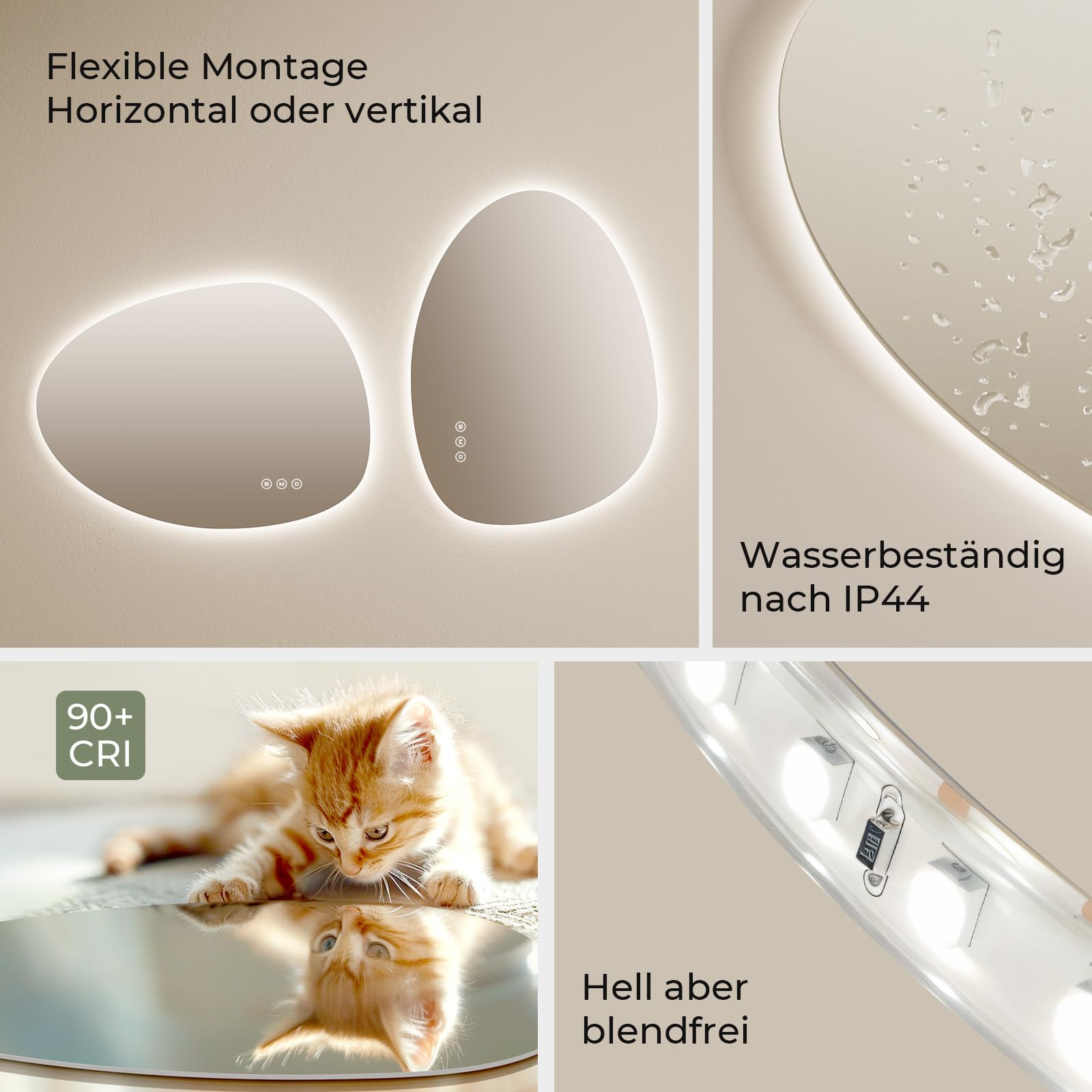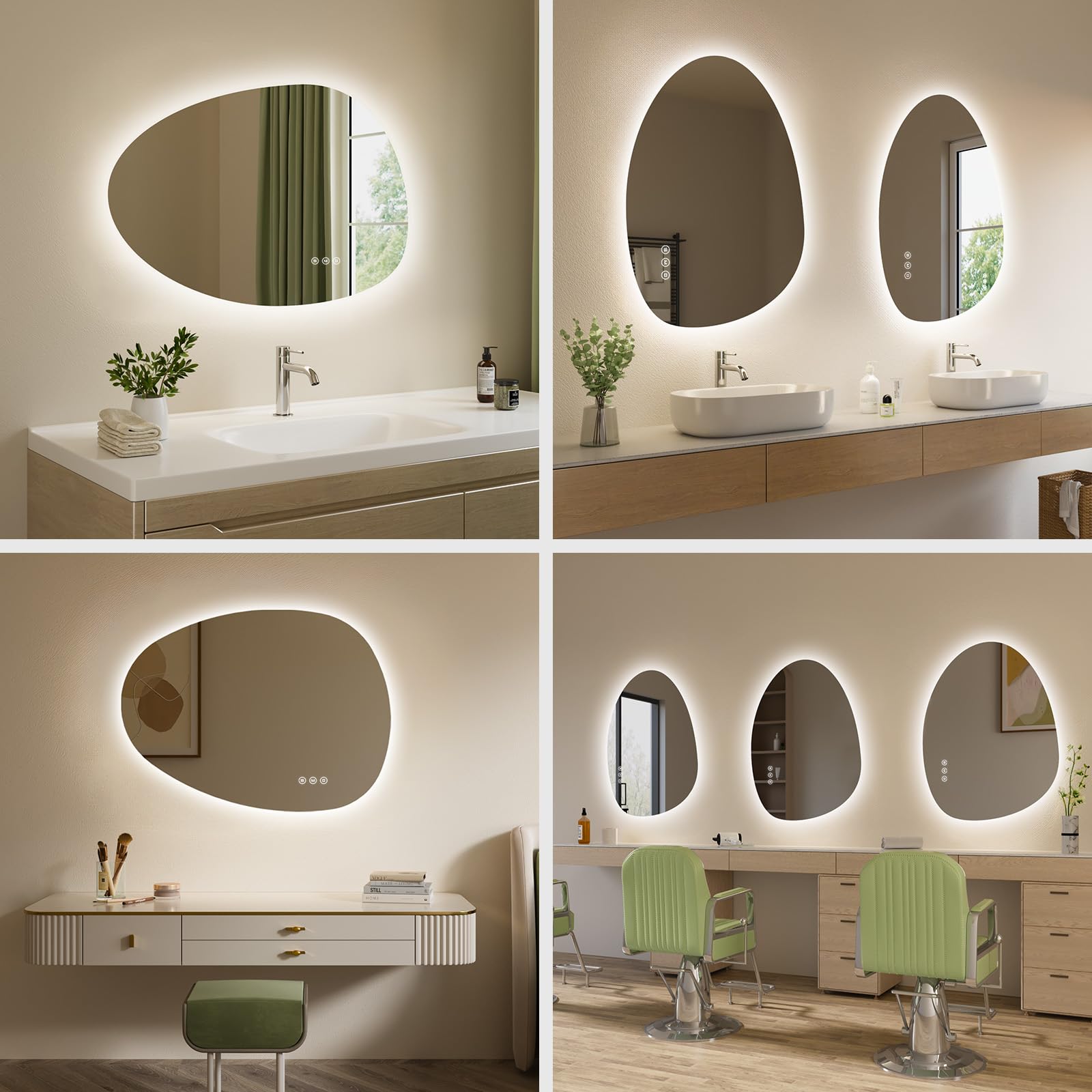Verleihen Sie Ihrem Badezimmer mit diesem asymmetrischen LED-Spiegel eine moderne und individuelle Note. Er kombiniert ein einzigartiges Design mit intelligenter Funktionalität, um Ihren Alltag zu bereichern.