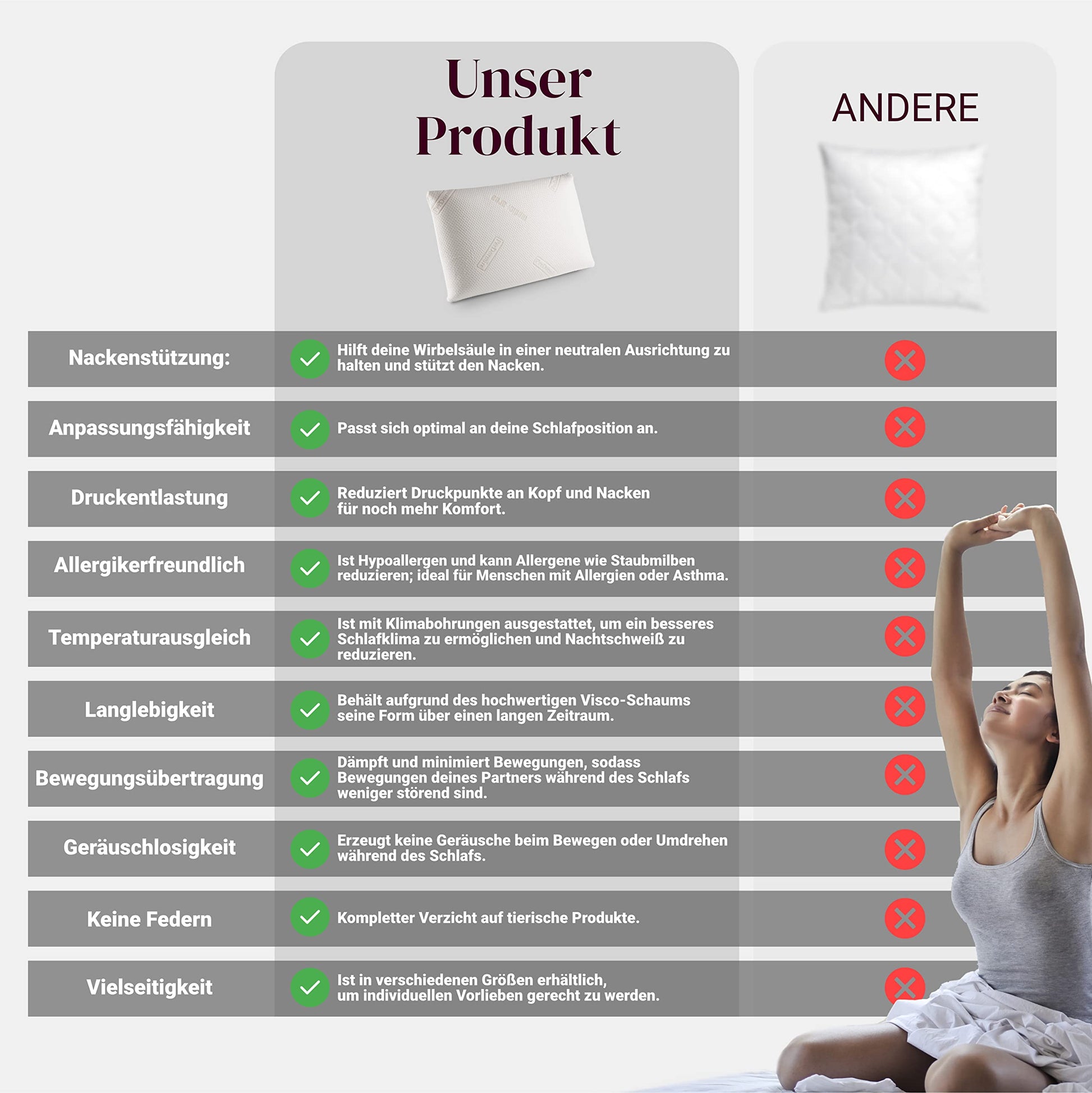 Investieren Sie in Ihre Schlafqualität und starten Sie mit diesem Kissen erholt und schmerzfrei in den neuen Tag.