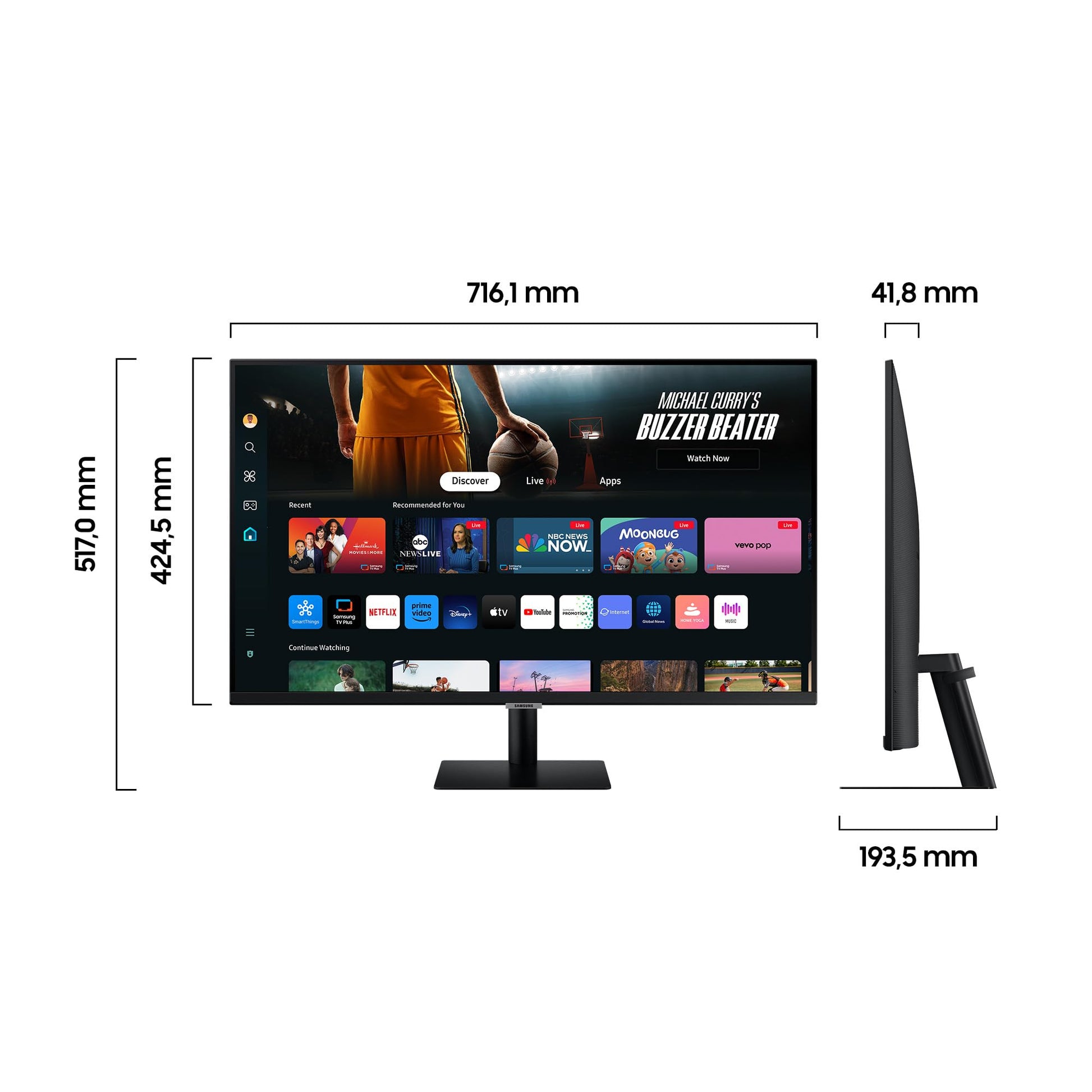 - Lieferumfang: 1x Samsung M70D Smart Monitor (32 Zoll), 1x Stromkabel, 1x HDMI-Kabel, 1x USB-C-Kabel, 1x SolarCell-Fernbedienung