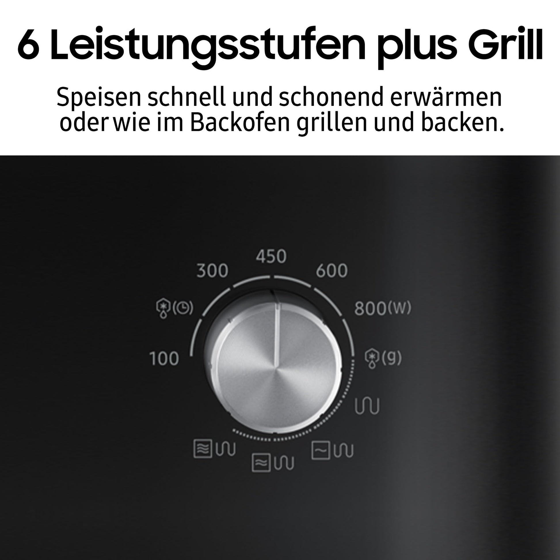 Die Mikrowelle arbeitet mit einer Leistung von 800 Watt, ideal für schnelles Erwärmen und Garen. Die Grillfunktion bietet zusätzlich eine starke Leistung von 1100 Watt für schnelle und knusprige Ergebnisse.