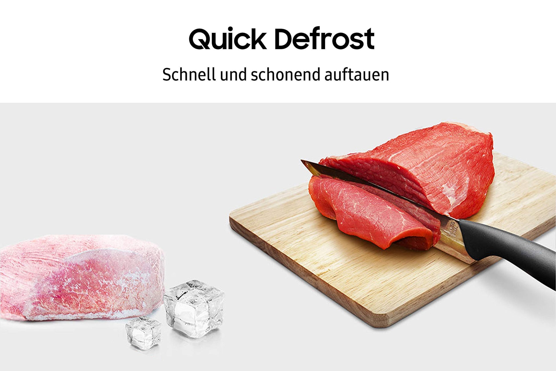 Die Quick Defrost Funktion taut gefrorene Lebensmittel besonders schnell und gleichmässig auf. Spezielle Auftauprogramme sorgen dafür, dass die ursprüngliche Frische und Konsistenz der Lebensmittel erhalten bleiben, was sie von herkömmlichen Auftaumethoden unterscheidet.