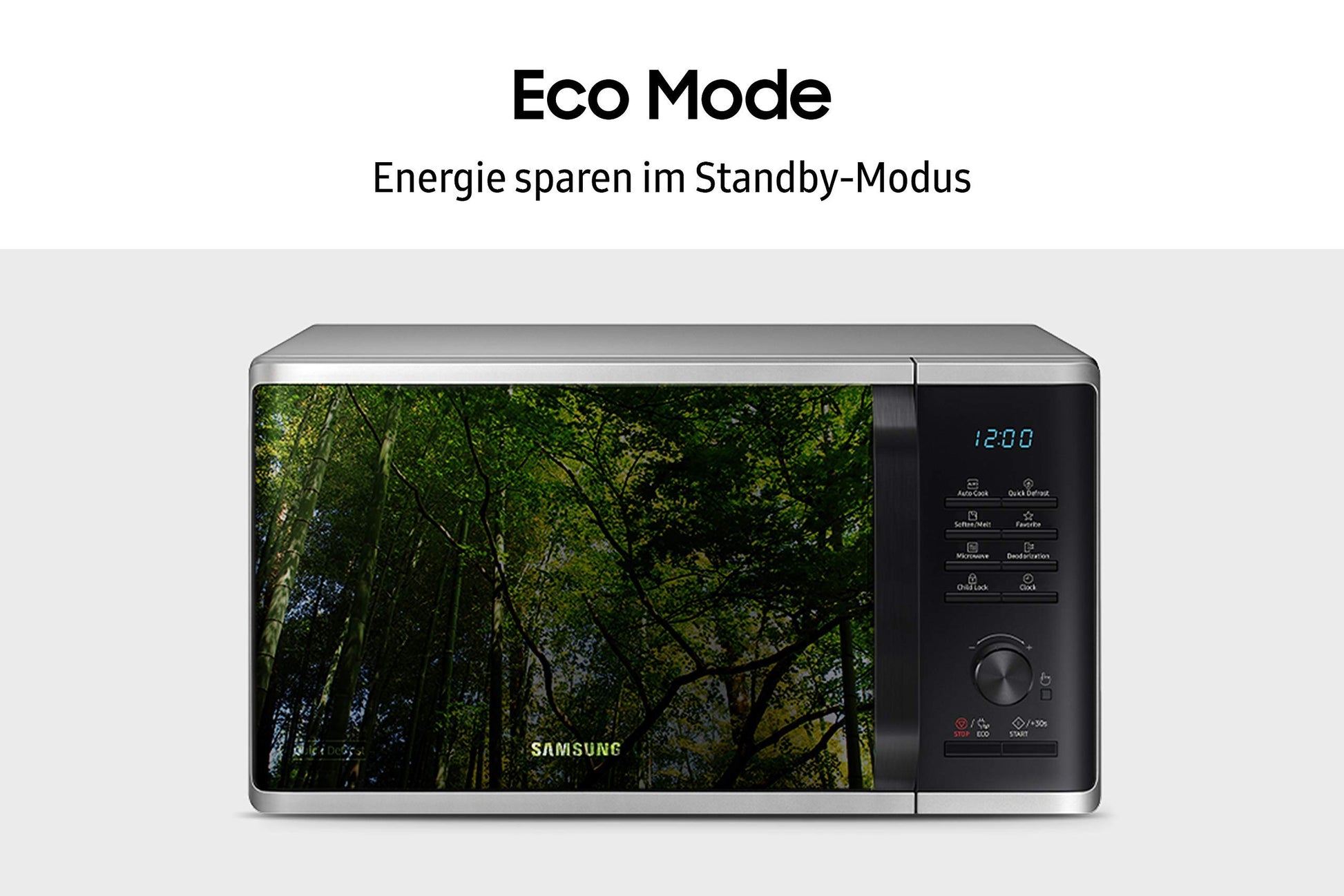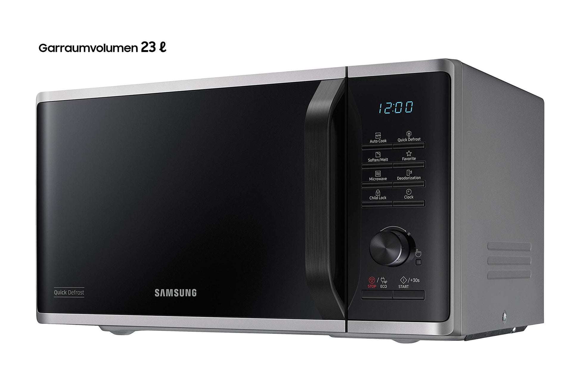 Die Samsung MS2AK3515AS/EG hat eine Breite von 48,9 cm. Der Garraum bietet ein Fassungsvermögen von 23 Litern, ideal für die Zubereitung alltäglicher Mahlzeiten.