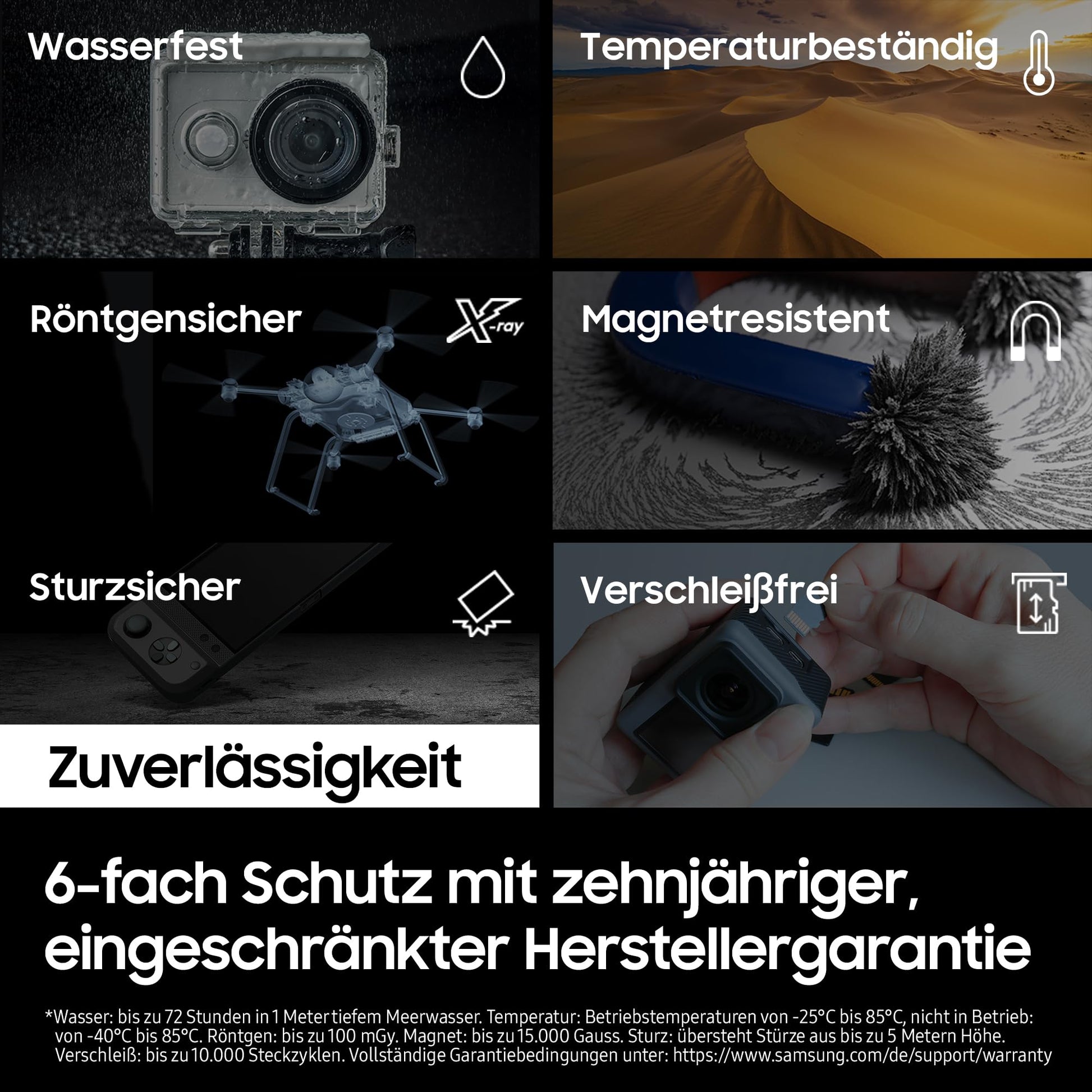 - 6-facher Schutz: Ihre Daten sind optimal gesichert dank Schutz vor Wasser, extremen Temperaturen, Röntgenstrahlen, Magnetfeldern, Stürzen und Verschleiss.