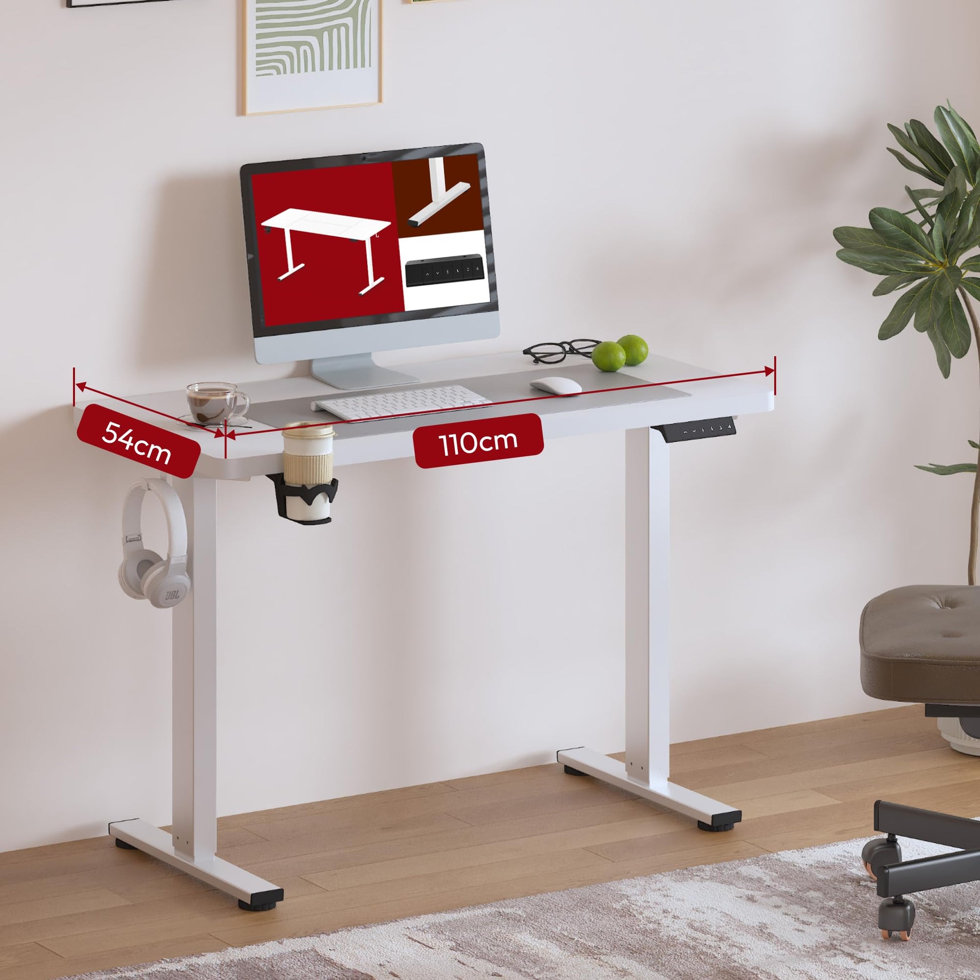 SANODESK Höhenverstellbarer Schreibtisch Elektrisch 110x54 cm weiss