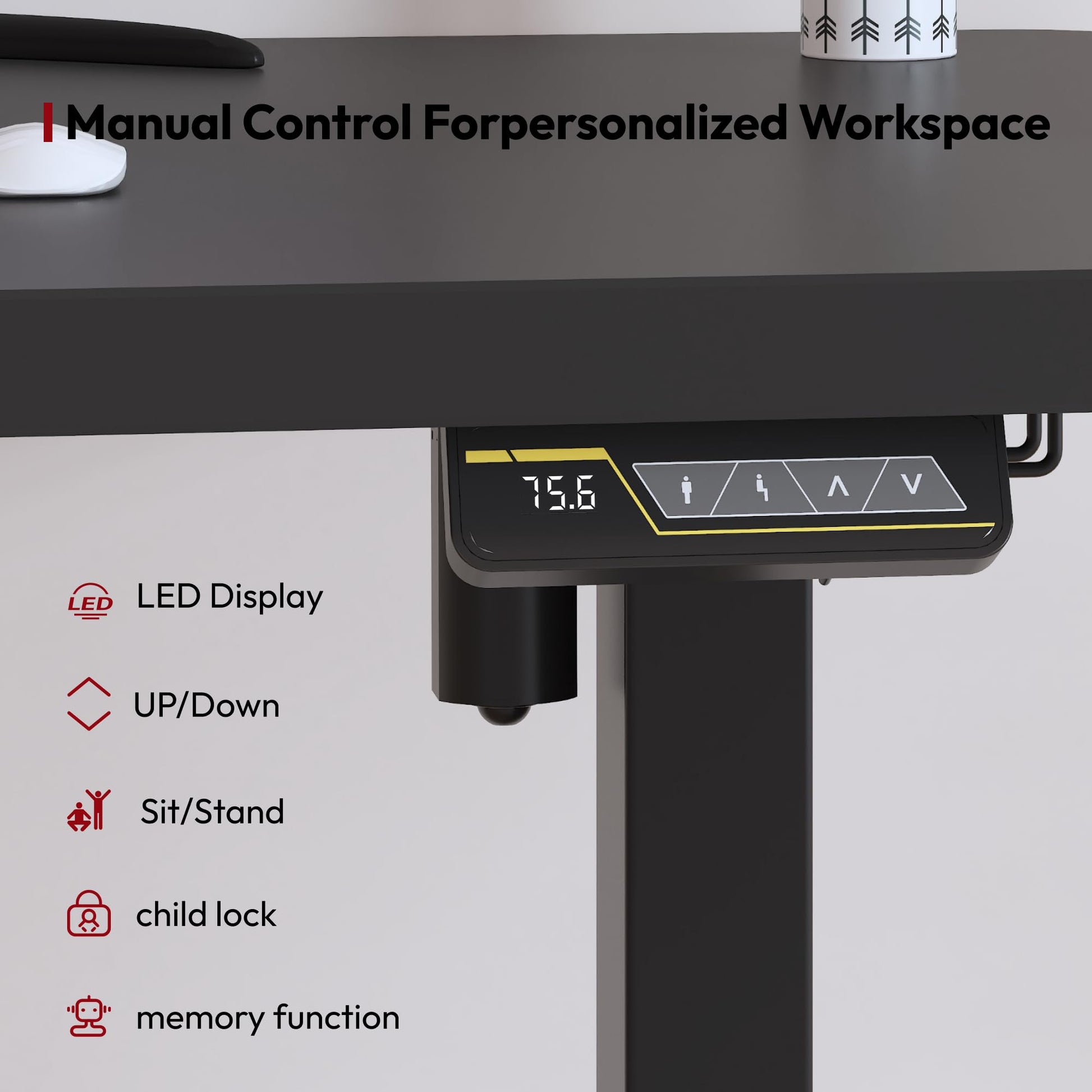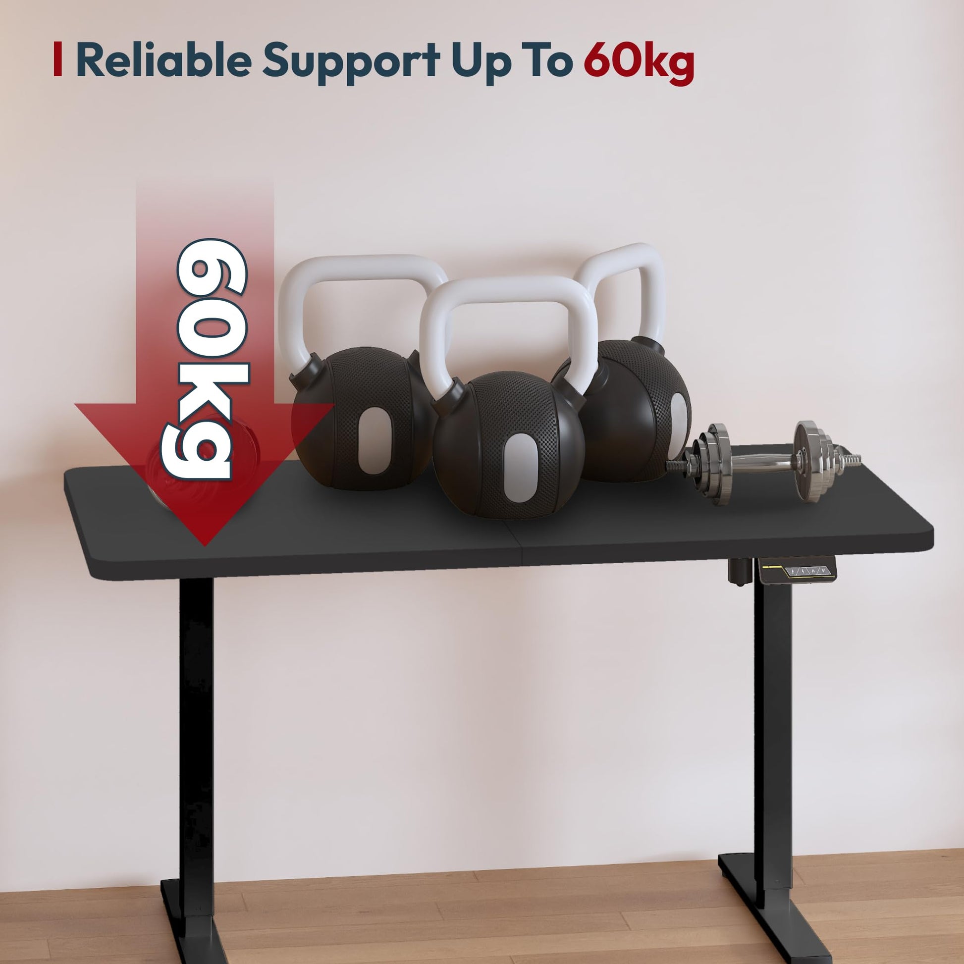 - Integrierter Kollisionsschutz: Das System erkennt Hindernisse während der Höhenverstellung, stoppt automatisch und fährt leicht zurück, um Möbel und Geräte zu schützen.
