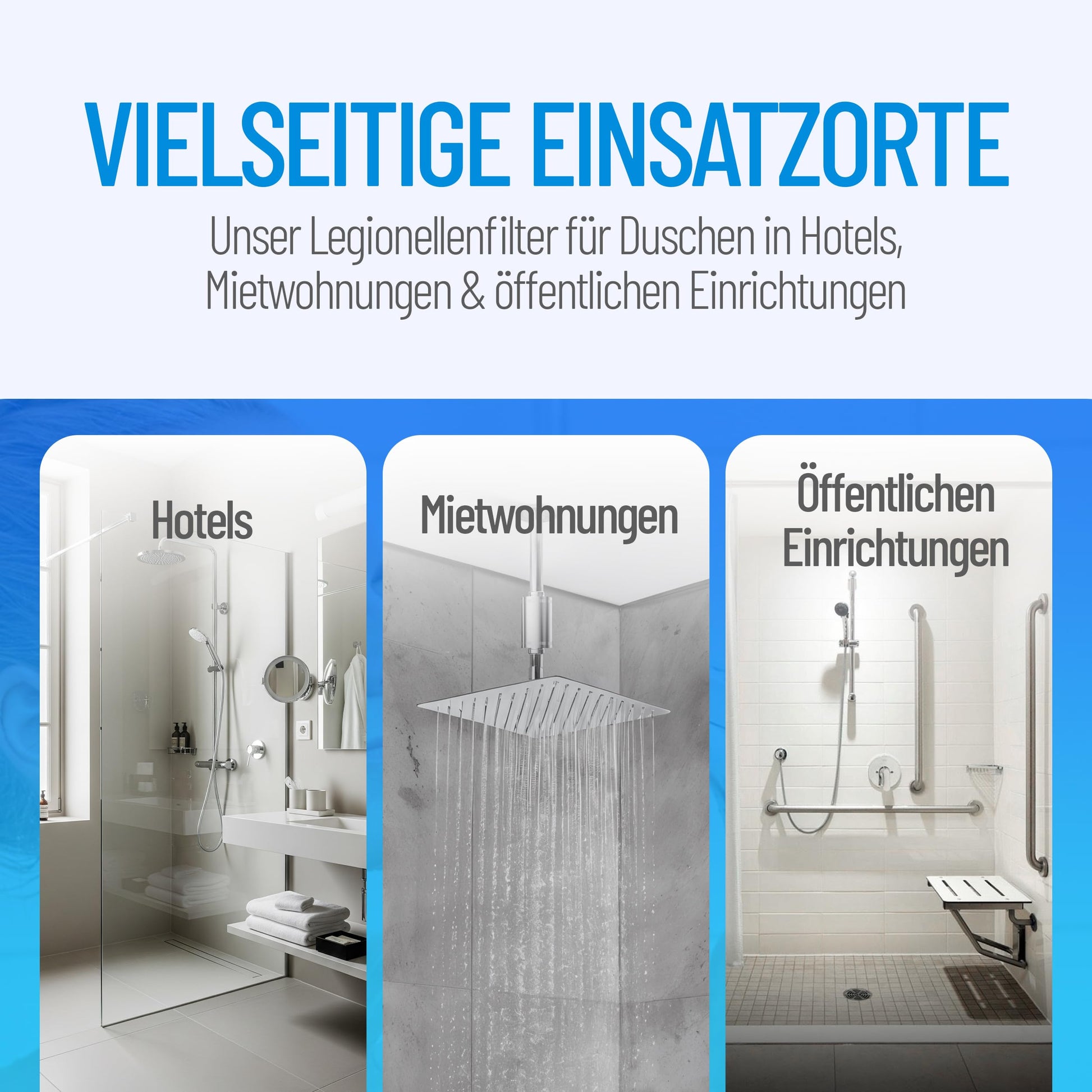 Der Filter ist ideal für jeden, der die Gesundheit seiner Familie schützen möchte. Besonders empfohlen wird er für Mietwohnungen, Ferienobjekte und Hotels, um Mieter und Gäste aktiv vor Legionelleninfektionen zu schützen und behördlichen Anordnungen wie einem Duschverbot vorzubeugen.