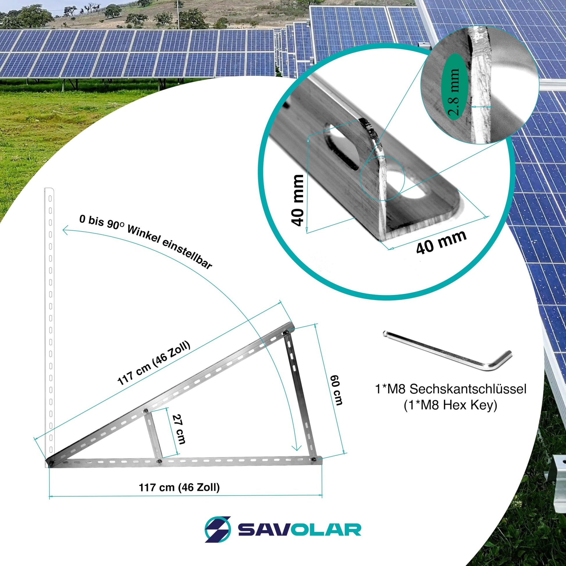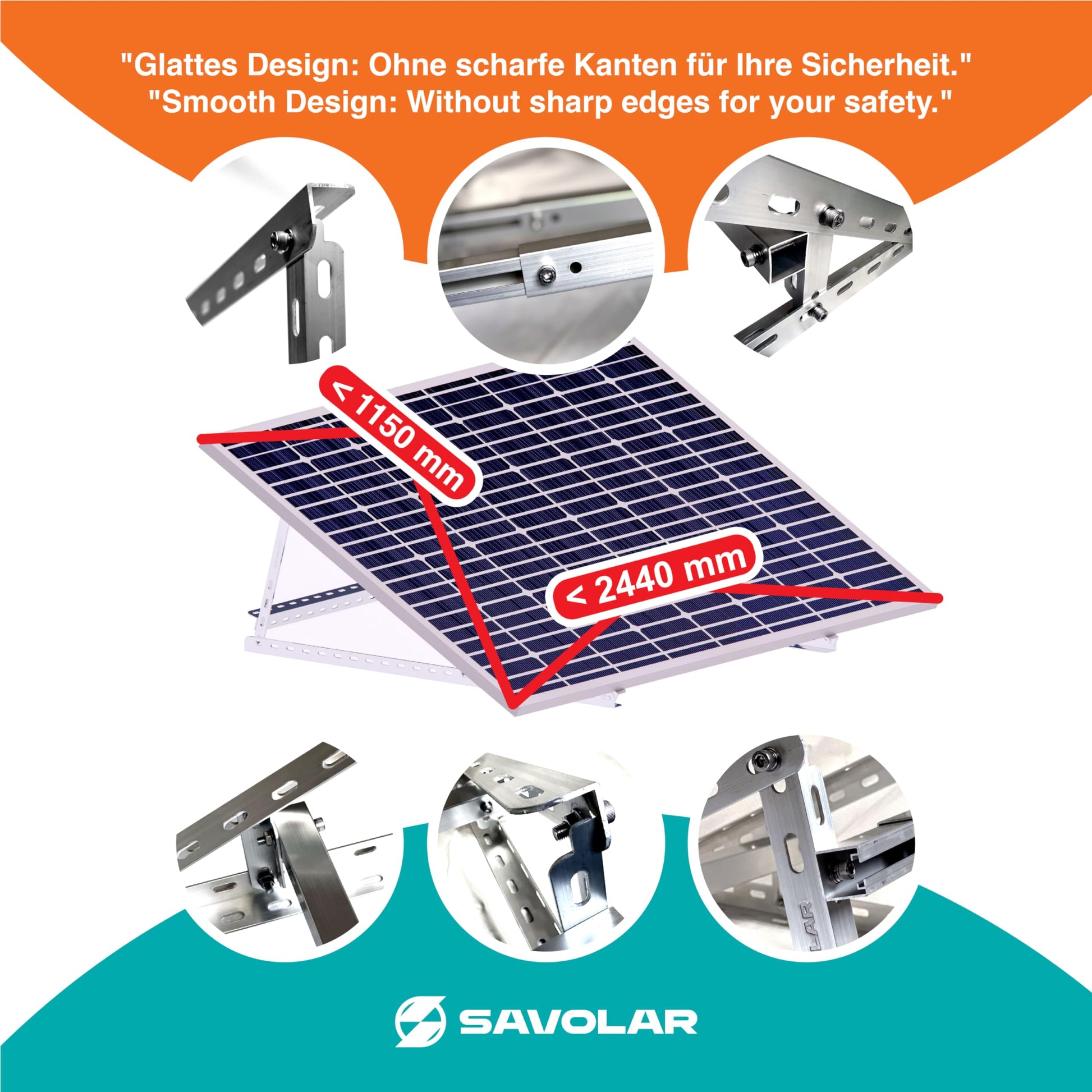 - Flexibler Neigungswinkel: Dank der vorgebohrten Löcher lässt sich der Winkel einfach und präzise zwischen 0° und 90° einstellen, um die Sonneneinstrahlung optimal zu nutzen.