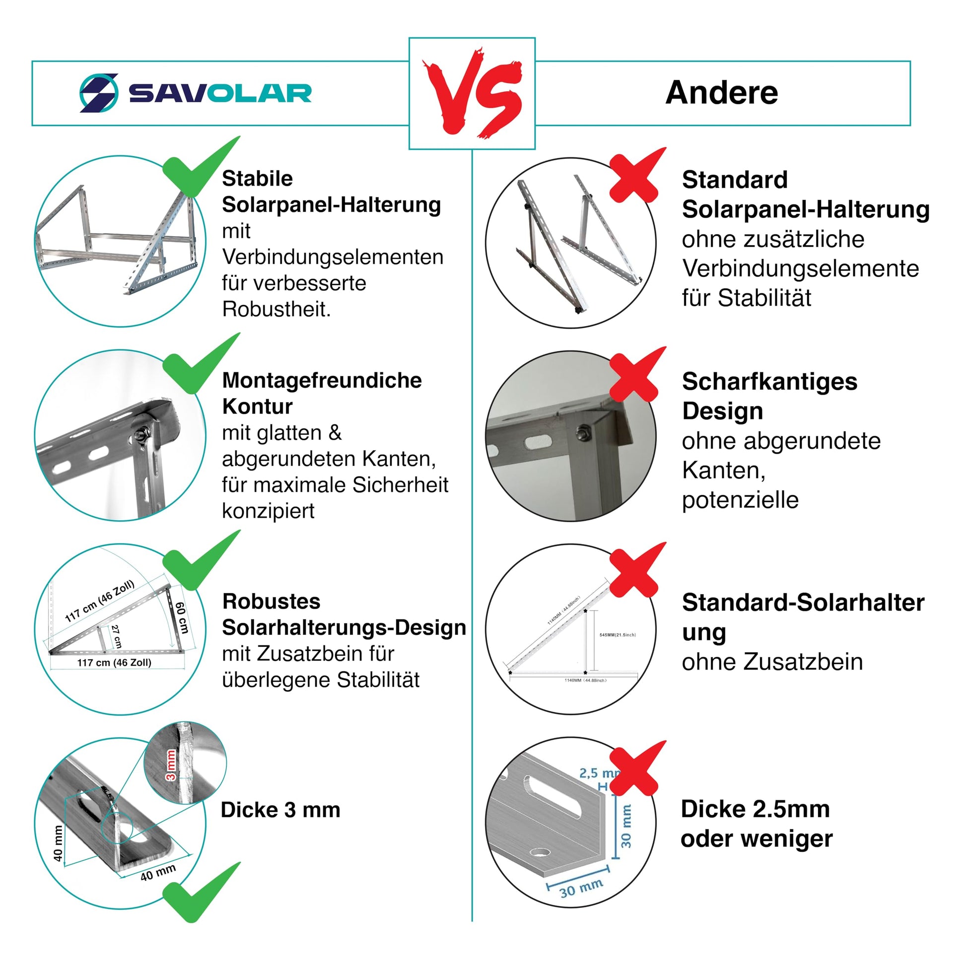 - Breite Kompatibilität: Eignet sich für die meisten gängigen Solarmodule mit einer Leistung von 100W bis 600W und einer maximalen Breite von 117 cm.