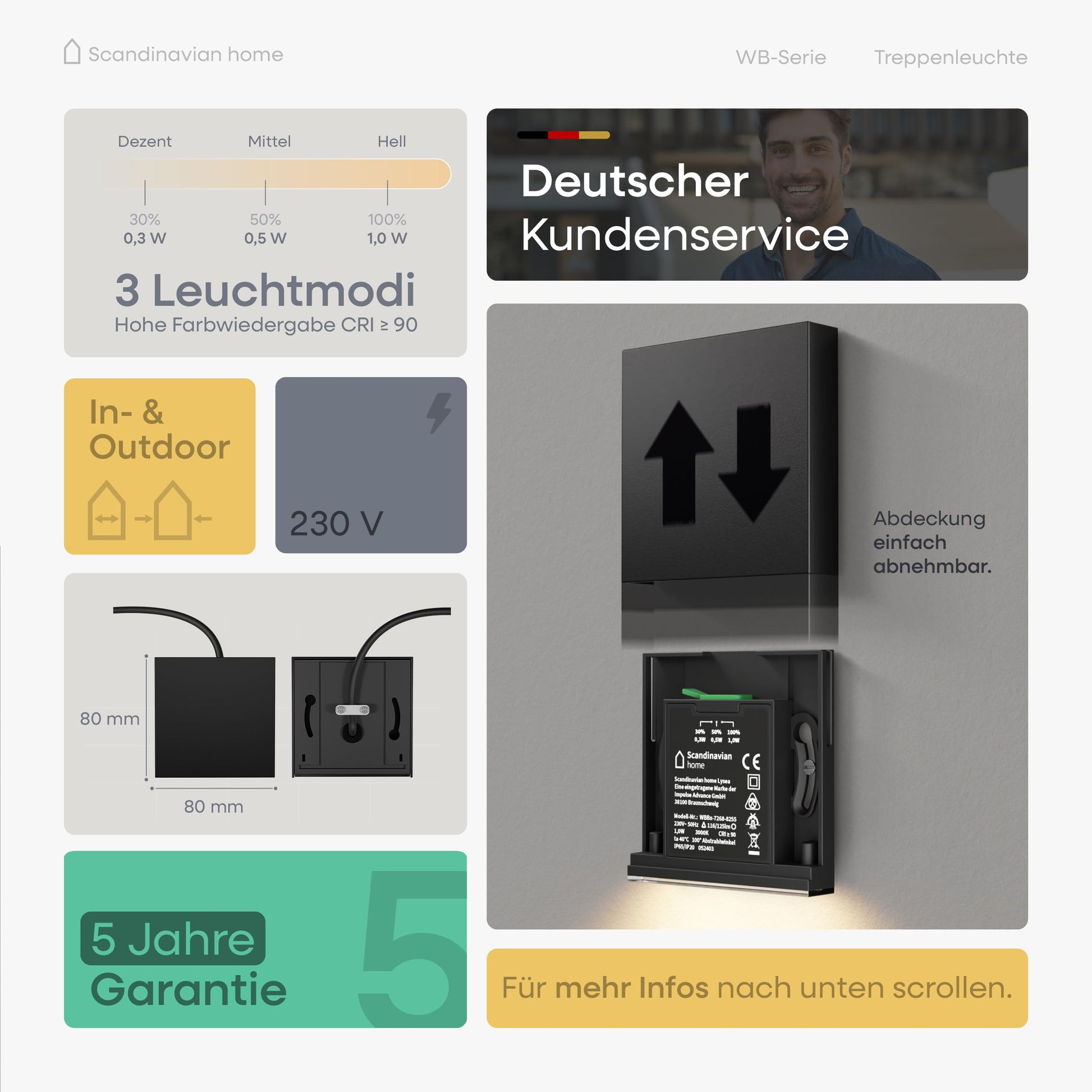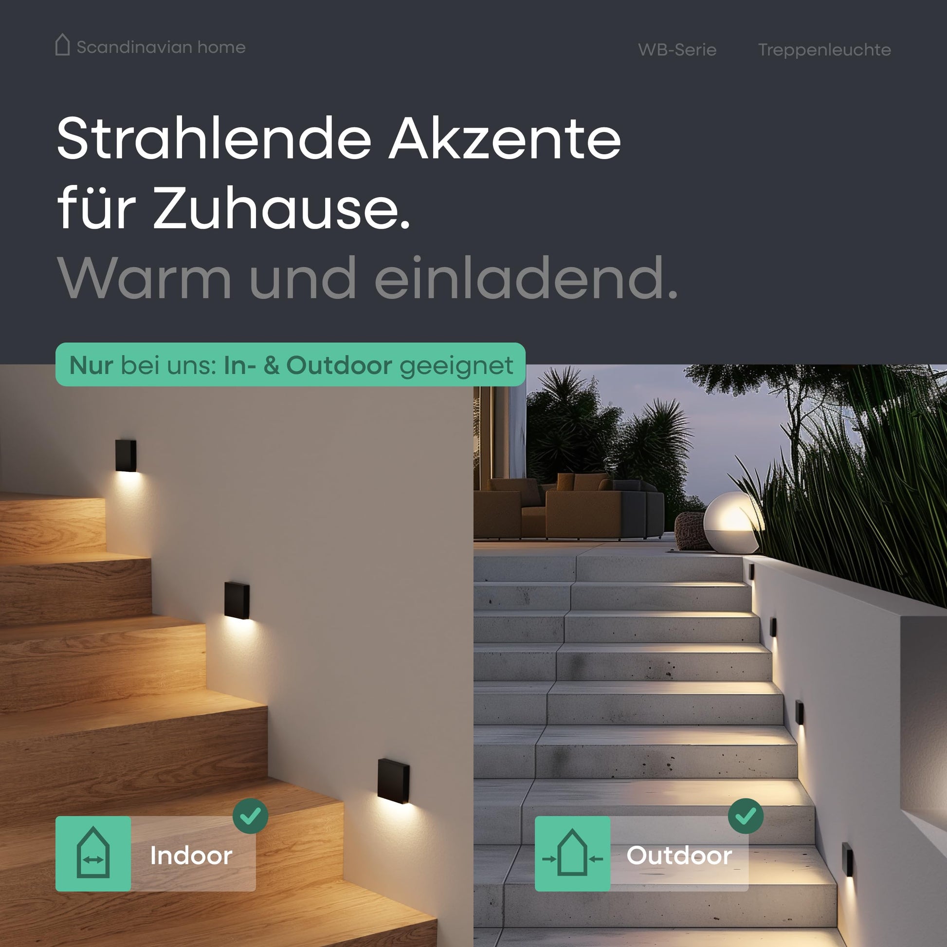 Scandinavian home LED Treppenbeleuchtung Set 6 Stk. Warmweiss Aussen/Innen