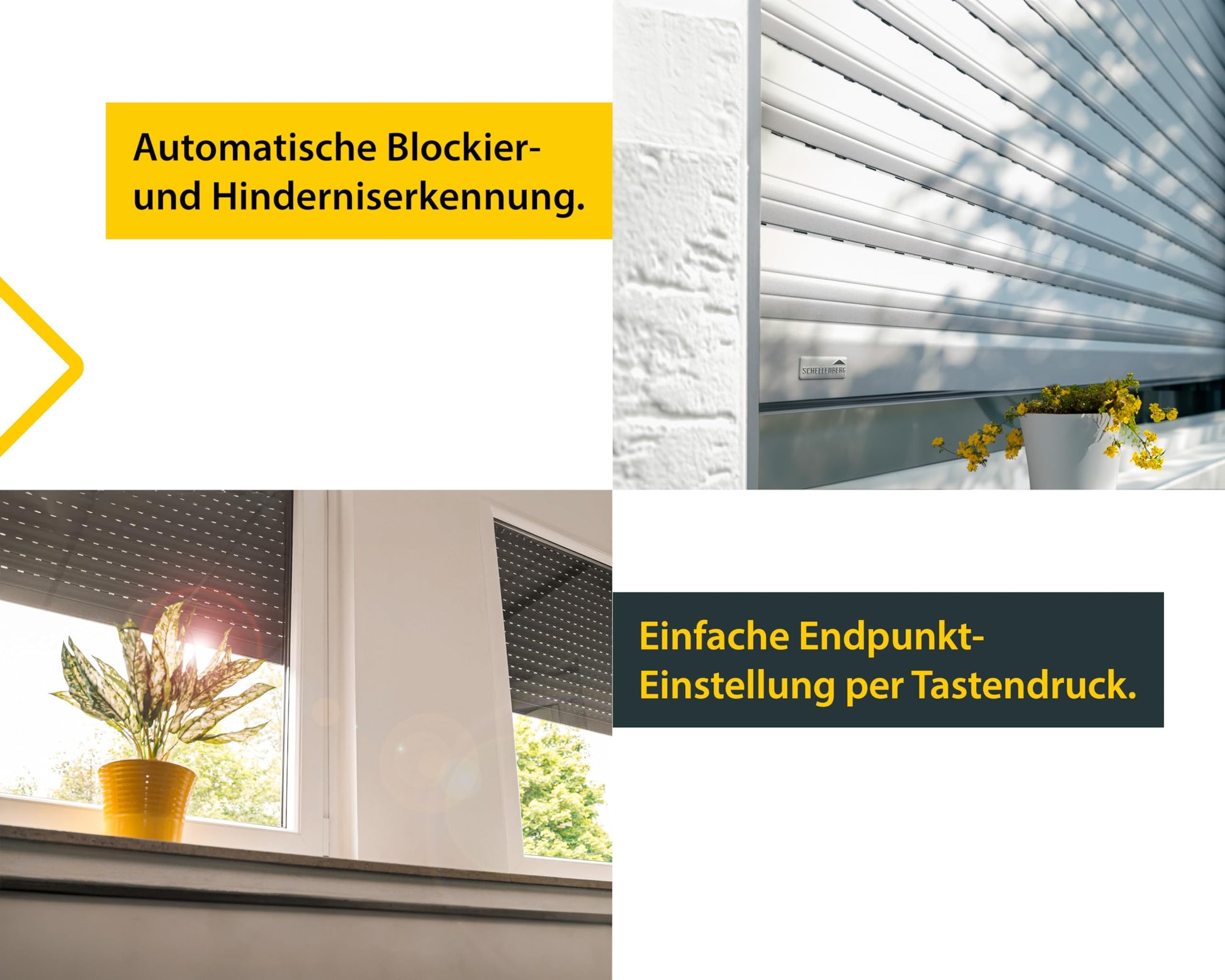 Bei einem Stromausfall speichert das Gerät die eingestellten Endpunkte, sodass Sie nichts neu programmieren müssen. Falls der Rollladen auf ein Hindernis trifft, stoppt die automatische Sicherheitsabschaltung den Motor sofort, um Schäden zu verhindern.