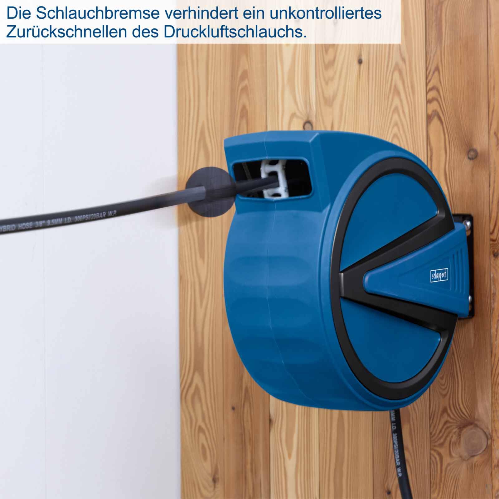 Für zusätzliche Sicherheit ist eine Schlauchbremse integriert, die ein unkontrolliertes und gefährliches Zurückschnellen des Schlauches verhindert. So arbeiten Sie nicht nur komfortabler, sondern auch sicherer.