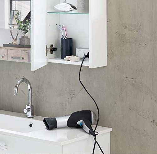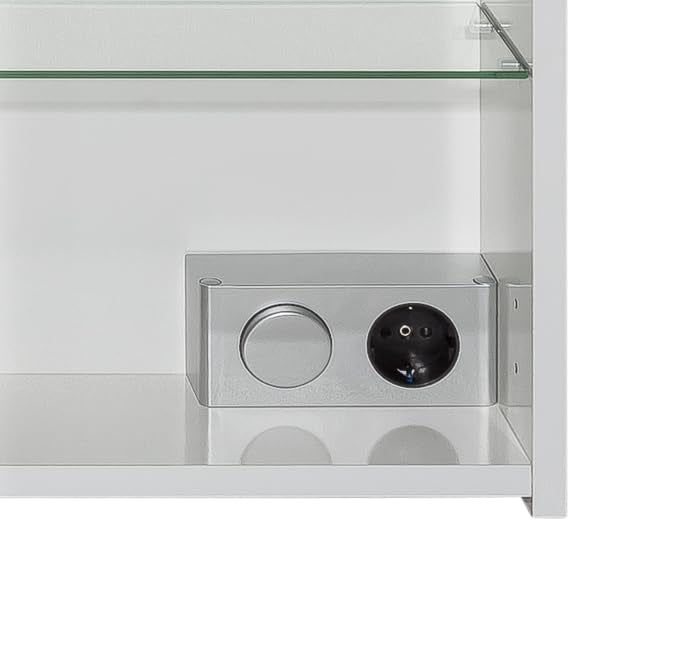 Die eingebaute Steckdose ist ideal für den Betrieb von elektrischen Zahnbürsten, Rasierapparaten oder Föhns, direkt dort, wo Sie sie benötigen. Mit dem danebenliegenden Schalter steuern Sie bequem die helle LED-Beleuchtung, die Ihr Gesicht schattenfrei ausleuchtet und so die tägliche Routine erleichtert.