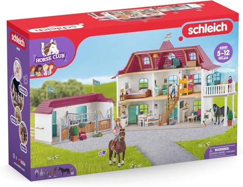 Erleben Sie mit dem Lakeside Pferdehof von schleich die perfekte Kombination aus gemütlichem Familienleben und spannenden Pferdeabenteuern. Dieses umfangreiche Spielset ist das Herzstück der HORSE CLUB Welt und bietet unzählige Möglichkeiten für fantasievolles Spielen.