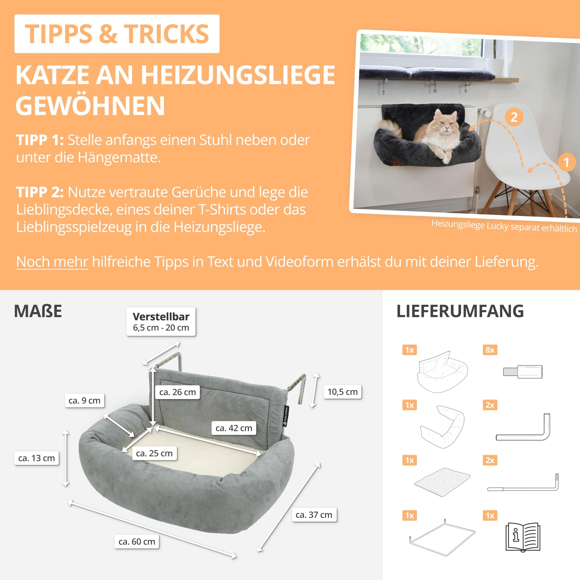 Verwöhnen Sie Ihren Stubentiger mit dem ultimativen Wohlfühlplatz. Diese Premium Heizungsliege bietet Ihrer Katze einen warmen und gemütlichen Rückzugsort direkt an der Heizung, der Stil und Komfort perfekt vereint.