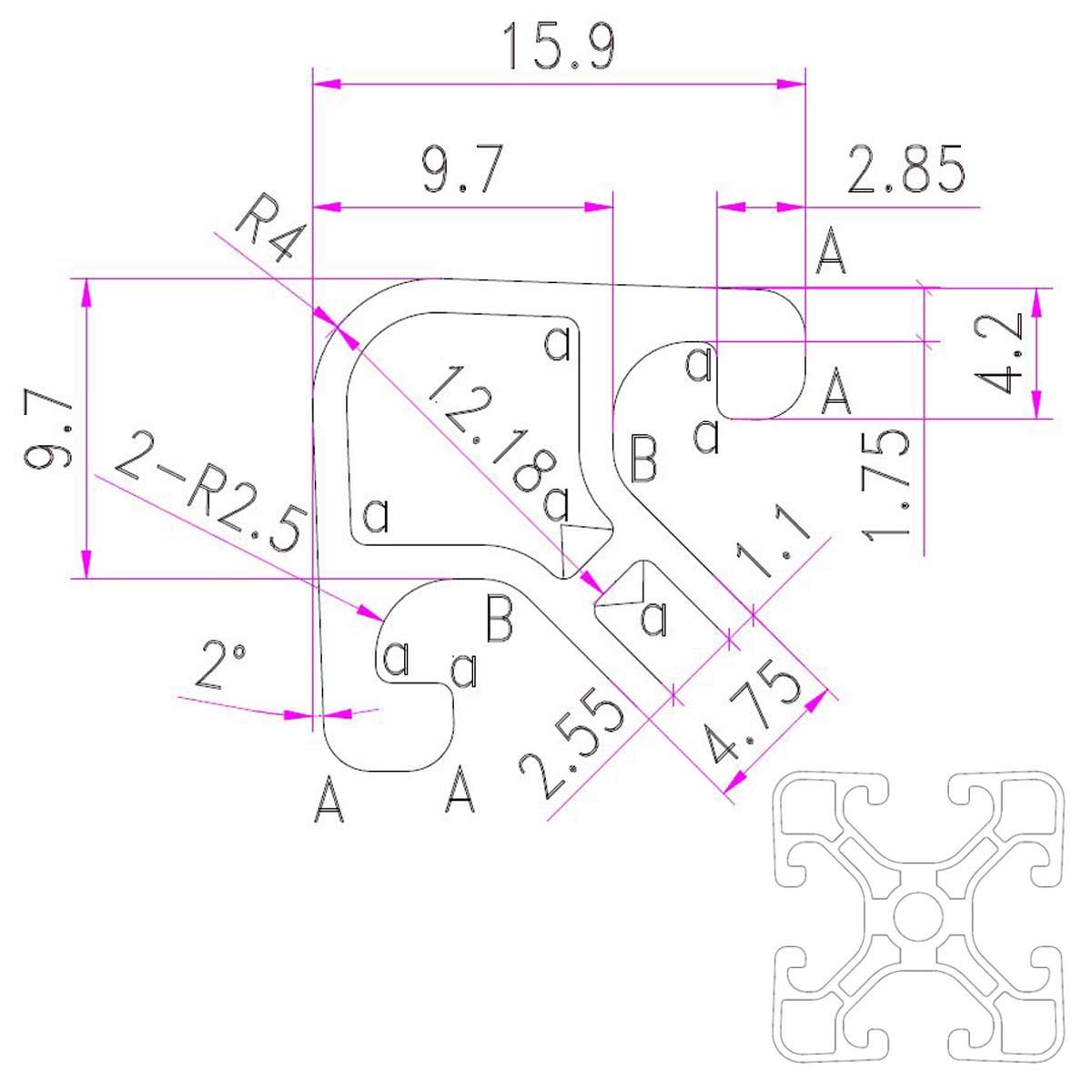 - Profilabmessungen: Quadratisches 40x40 mm Profil mit einer 8 mm breiten und 12 mm tiefen Nut (Nut 8).