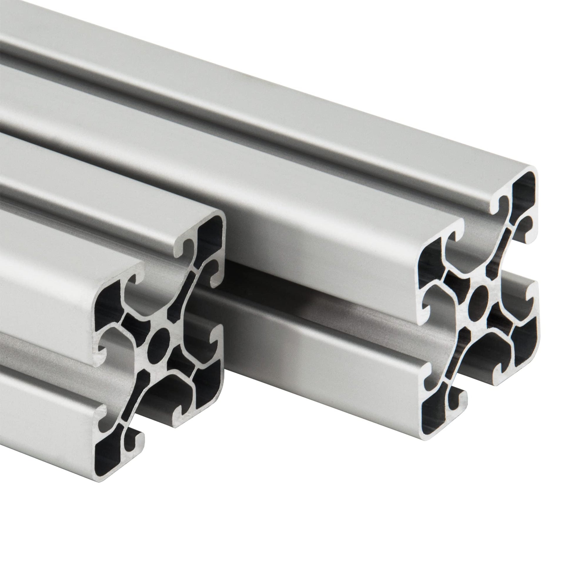 Sie erhalten ein Set bestehend aus sechs einzelnen Aluminiumprofilen des Typs 40x40 Nut 8. Jedes Profil hat eine Länge von 2 Metern, was eine Gesamtlänge von 12 Metern ergibt.