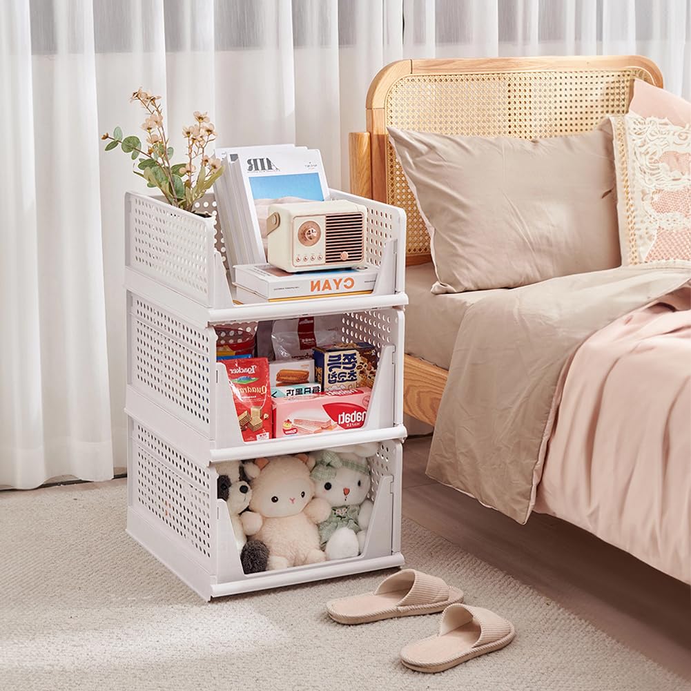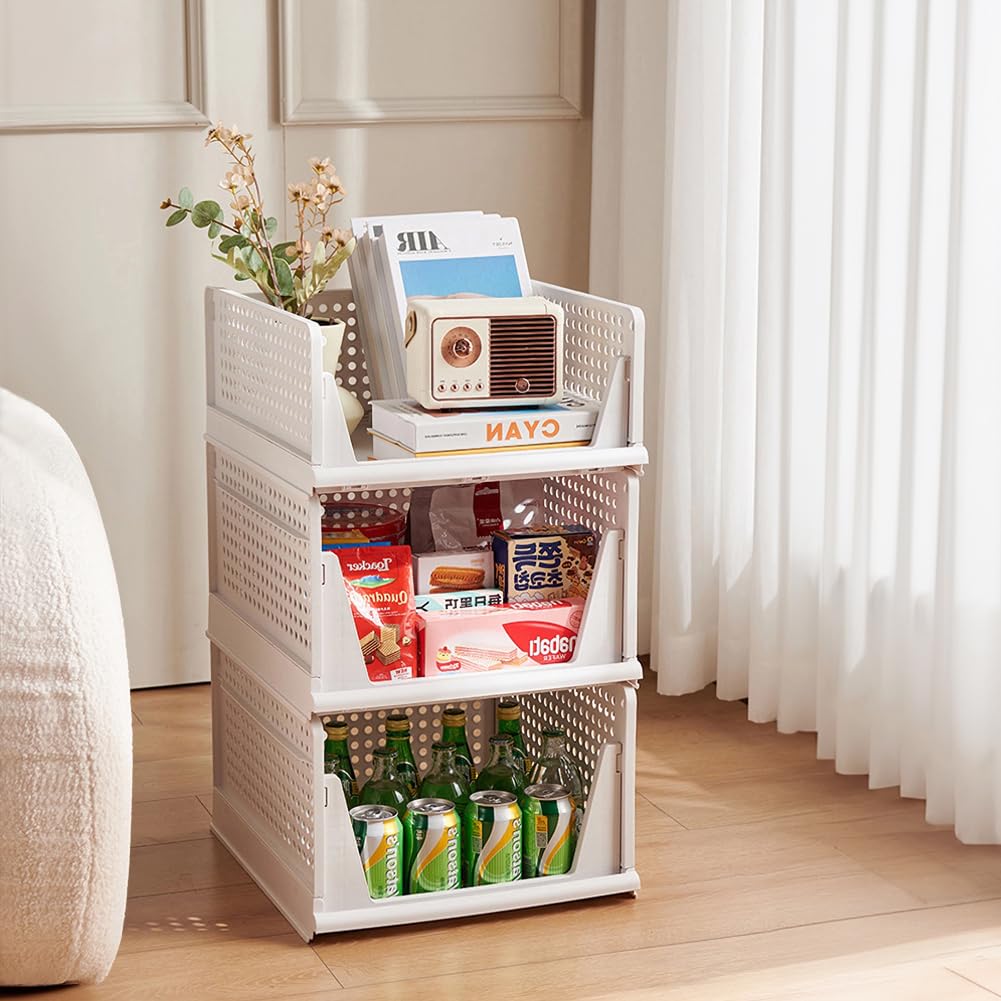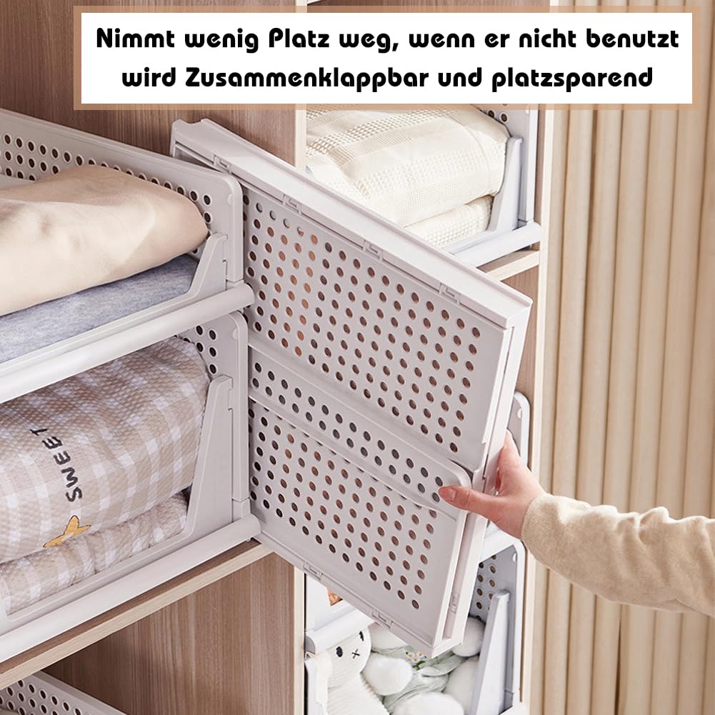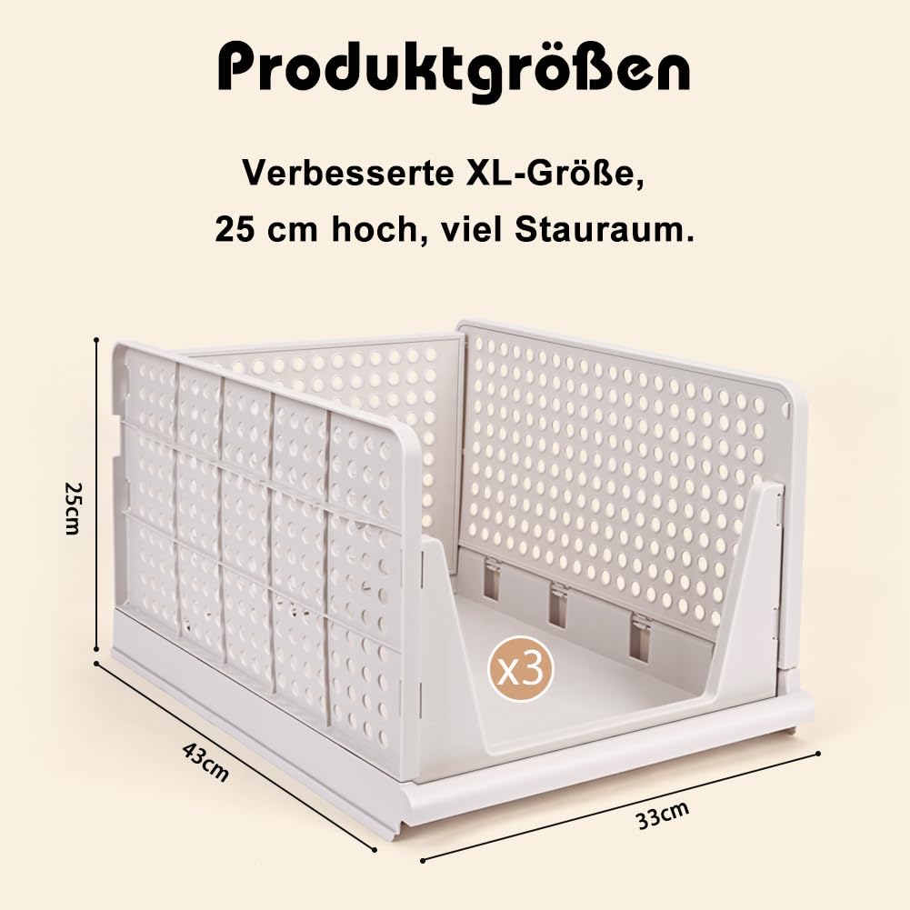 Die Boxen sind aus dickem, formstabilem Kunststoff gefertigt und für das sichere Stapeln konzipiert. Das Design sorgt für einen stabilen Stand, sodass Sie den vertikalen Platz in Ihrem Schrank oder Zimmer optimal ausnutzen können.