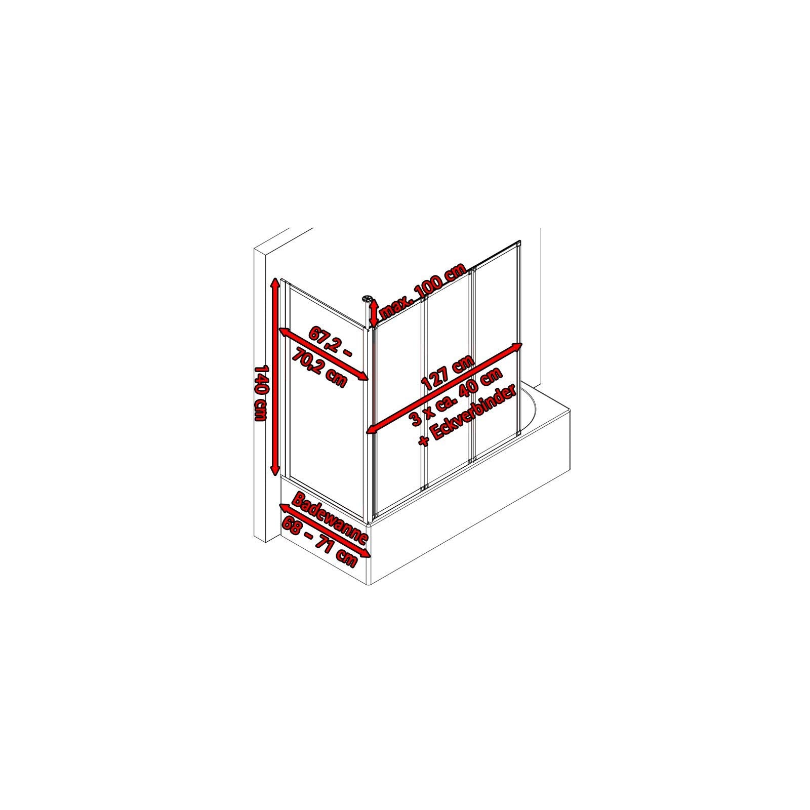 Schulte Duschwand Well Badewanne Seitenwand 3-teilig Kunstglas Tropfen