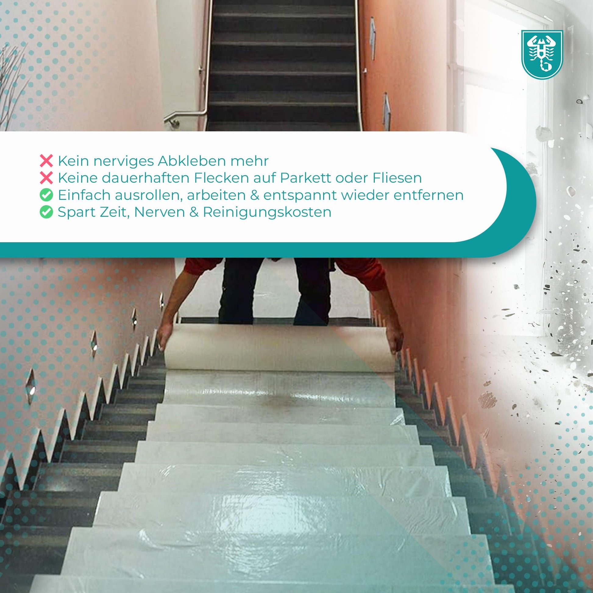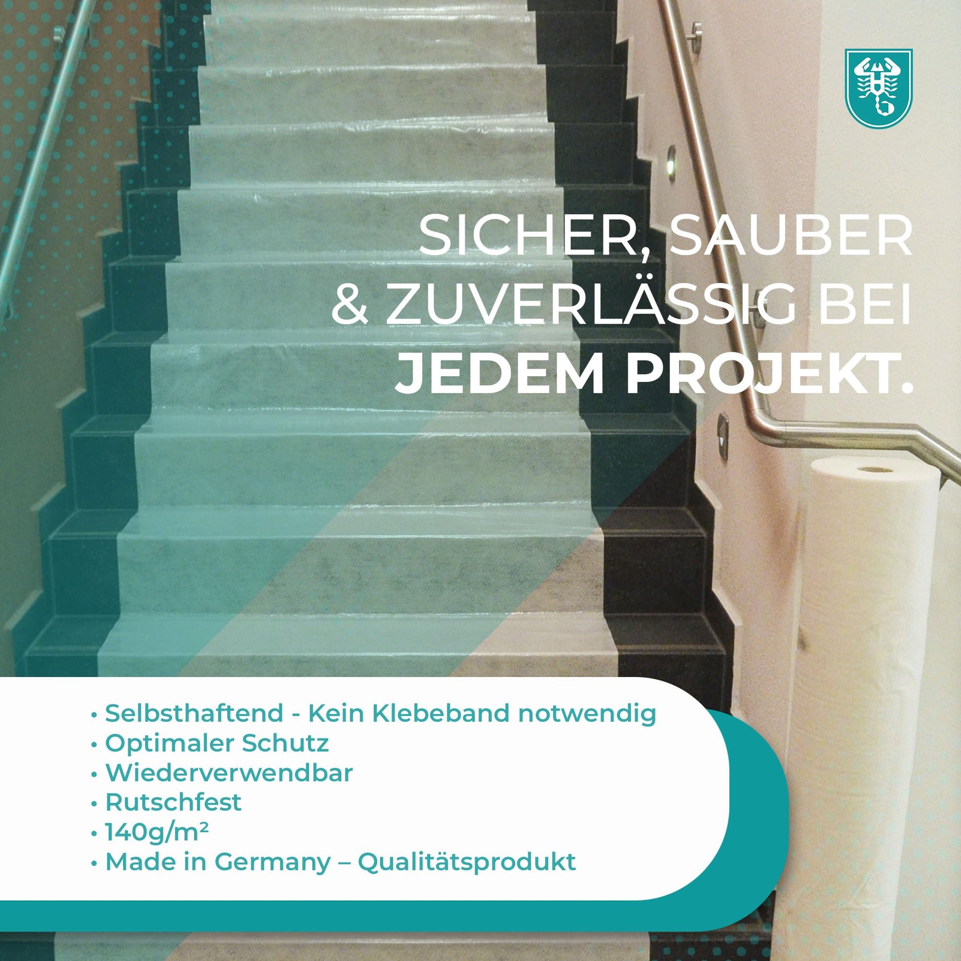 Schützen Sie Ihre Böden und Treppen während Renovations-, Maler- oder Bauarbeiten zuverlässig mit diesem hochwertigen Abdeckvlies. Es bietet eine sichere Barriere gegen Schmutz, Flüssigkeiten und mechanische Beschädigungen.
