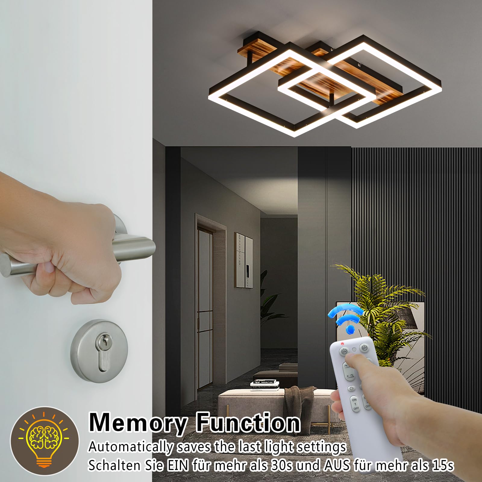 Die Leuchte merkt sich dank der Memory-Funktion Ihre letzte Einstellung, egal ob Sie sie per Fernbedienung oder Wandschalter ausschalten. Auch ohne Fernbedienung können Sie durch schnelles Schalten am Wandschalter bequem zwischen verschiedenen Lichtstimmungen wechseln.