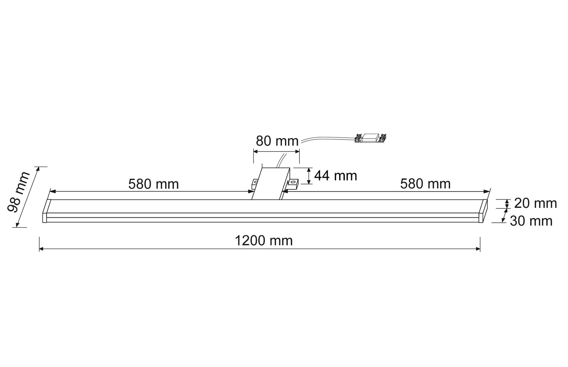 - Abmessungen: 1200 x 98 x 44 mm