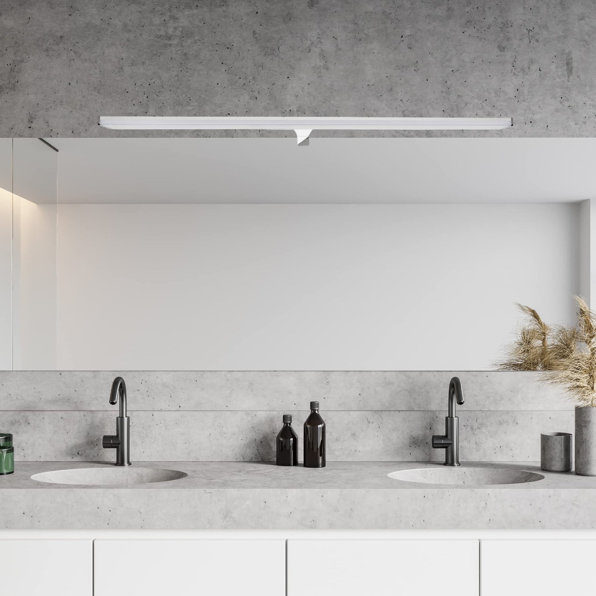Diese moderne Spiegelleuchte von SEBSON ist die ideale Lichtlösung für Ihr Badezimmer. Mit ihrer grosszügigen Länge und dem neutralweissen Licht sorgt sie für eine optimale und klare Ausleuchtung direkt dort, wo Sie es benötigen.