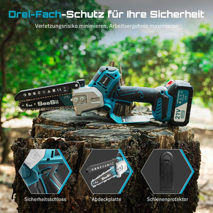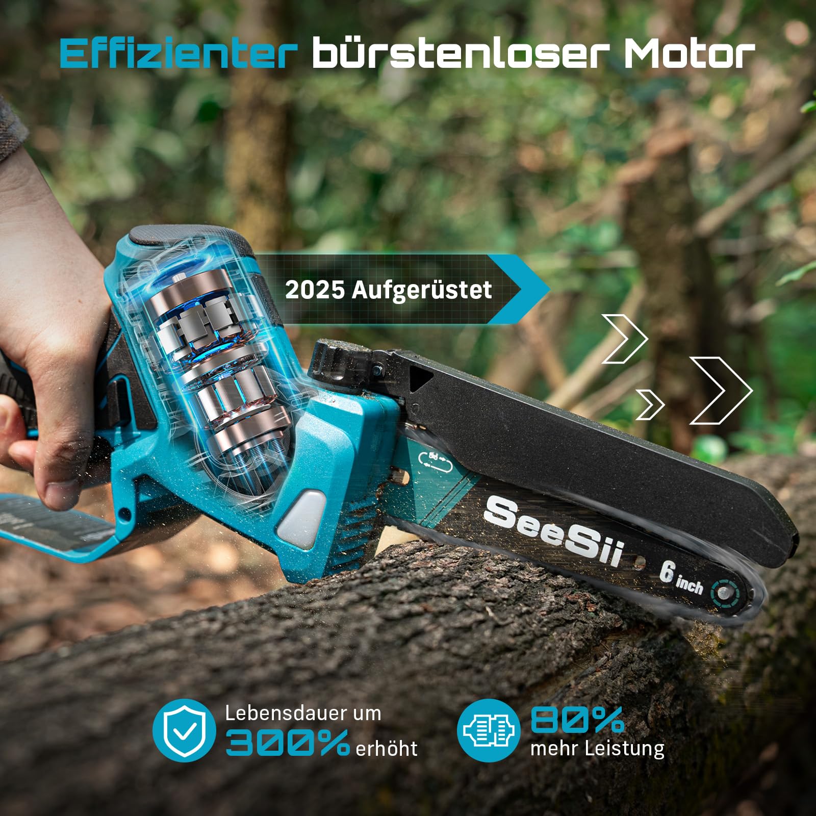 SEESII Bürstenlose Mini Akku Kettensäge 6 Zoll – Makita Kompatibel
